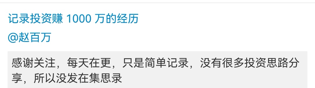 现在交流的风险大大增加了,一方面帖子容易被吞。另一方面,现在发帖会有人追着你杠。正常情况下,看到别人发的贴子如果觉得有价值,看一眼就是,没有价值,划走就是。但是现在杠精实在太多了,有时候你认认真真花了几个小时写了一篇帖子,总体上是有价值的,但是会有人拿着放大镜找你的问题,可能一篇帖子99%的地方都没有问题,但是就有人盯着那个1%的地方跟你抬杠,而且是追着你抬杠。如果你说了别人的持仓,提示了风险,...他强任他强,清风拂山岗