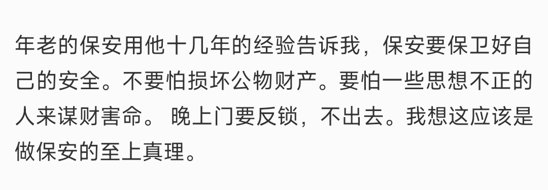 保安的话就当自己是移动摄像头,遇事往后面站,打电话摇人,记住一天工资只有70块