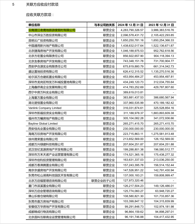 最大的是信用损失准备264亿元,其中其他应收款在2024年累计计提了284亿元,而2023年累计只计提了23亿元,这一项在一年里就多提了261亿元,原因在于2023年的单项计提比例只有0.51%,2024年猛增到11.08%。万科的其他应收款高达2495亿元,计提之后还有2214亿元,而万科的净资产也只有2027亿元。其他应收款里最大头的是“应收联营 / 合营及其他企业款”,有1362亿元,其次是“合作方经营往来款”877亿元,可能大部分是其他房地产公司欠的钱。房地产公司普遍经营不佳,这钱能还得上吗?其他应收款里账龄三年以上的就有907亿元之多,看来这欠账的质量真的不好。