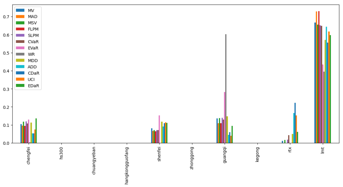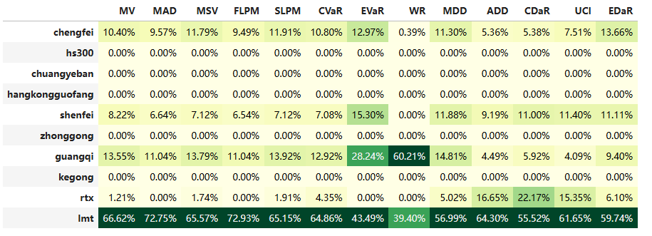 如果换成其他约束,系统给的配置比例也大同小异,基本是在光启技术和美股的洛克希德马丁之间做取舍了。(注:占比越高越好)