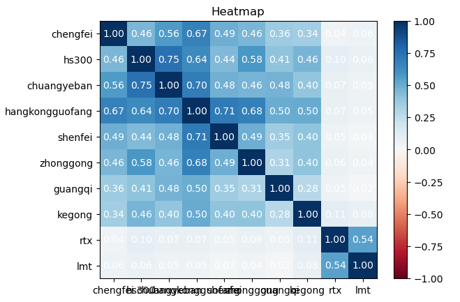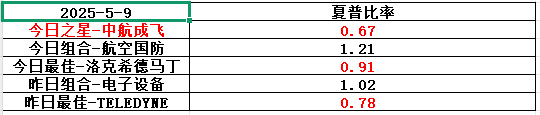 中航成飞,基本面略显平庸,历史表现遥遥领先,但目前估值太高,可以等回调。整个航空国防行业历史表现优异,波动小,综合夏普比率极具竞争力,建议重点关注,全球市场看洛克希德马丁,大中华市场看光启技术。(注:夏普比率越高越好)