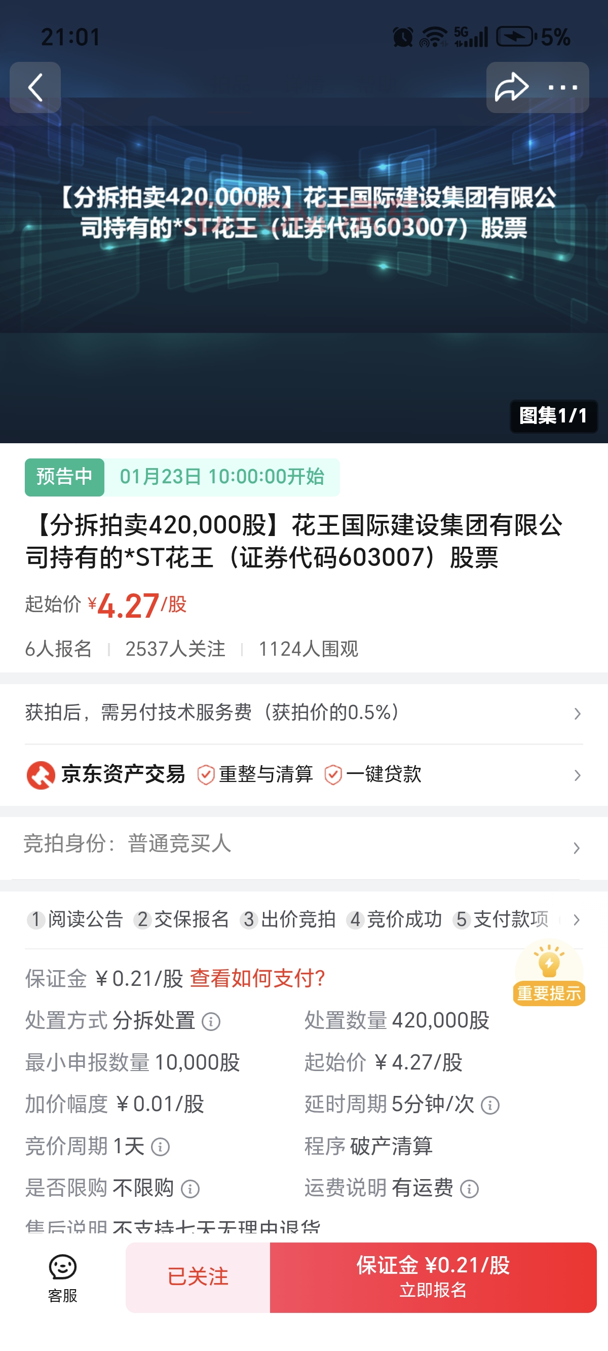 【京东】尊敬的用户您好,您关注的标的物"(第3次拍卖)(分拆拍卖33,773,600股)花王国际建设集团有限公司持有的花王股份(证券代码603007)股票"将在2025-06-24 10:00:00重新开拍,千万不要错过哦: http://mpaimai.jd.com/308700828