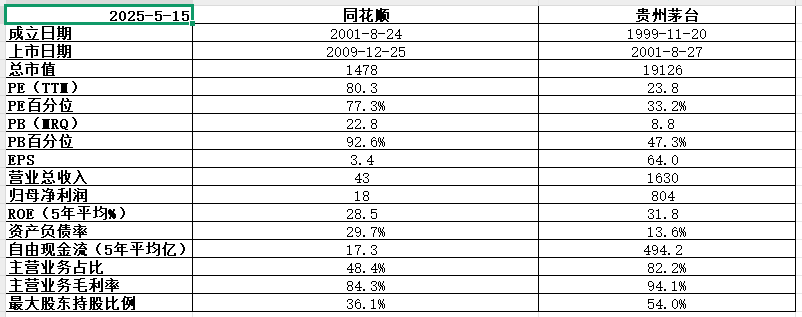 公司基本面优秀,五年平均ROE28.5%比肩茅台,而且五年平均自由现金流17.3亿赚的也是真金白银,不过目前92.6%的PB历史百分位估值太高。