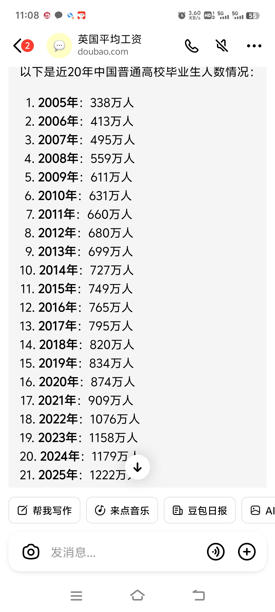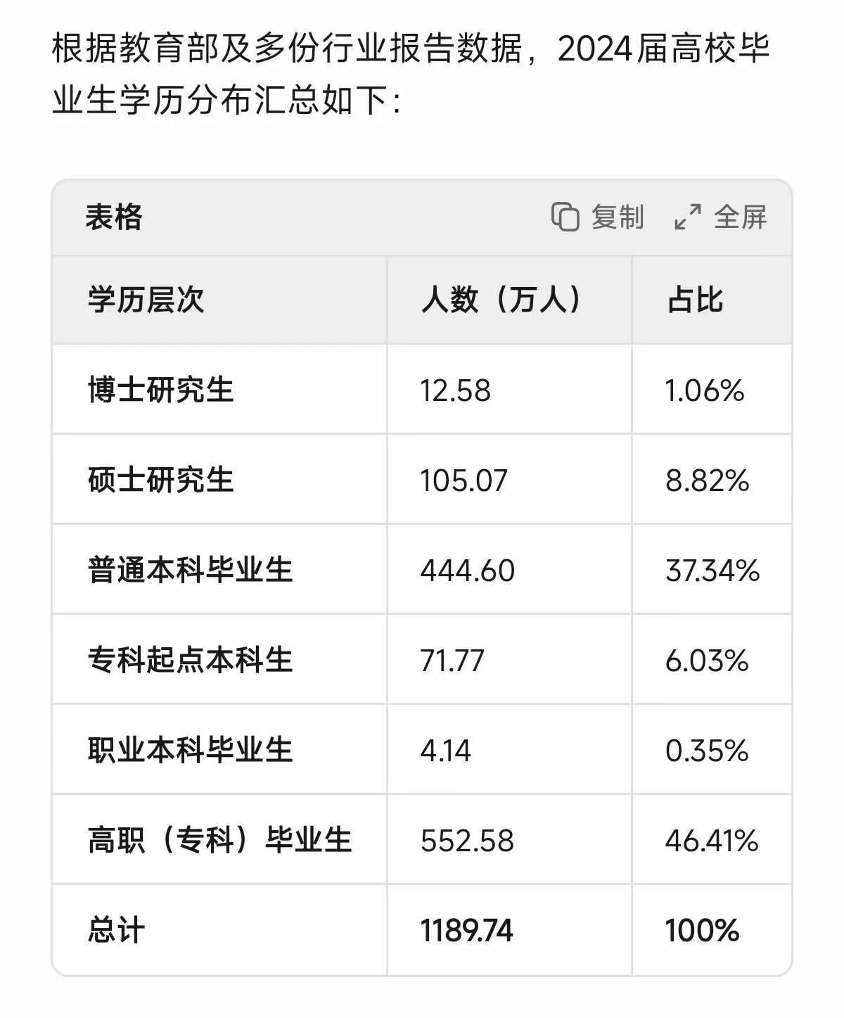 2006年出生人口数为1581万,2024年的本科招生数为475.6万,30%的同龄人能上本科,经济形势又处于下行期,也难怪大学生的就业压力这么大