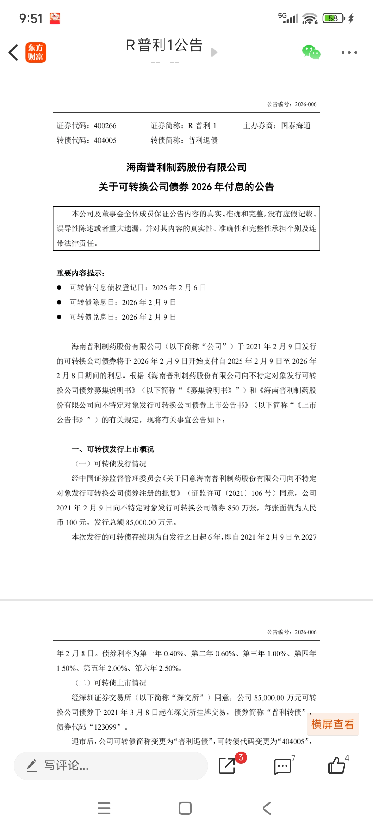 我想应该会有办法的,这点钱不至于,浙江普利拿到了国家高新认证,以及安徽药监一把手视察,说明普利基本已经被官方认可了,银行的信贷展期大概率也有眉目了,而且最近范总开始抛投头面,这些信息都侧面说明普利应该已经度过了最艰难的时期,开始好起来了。我觉得对于持债的兄弟们当前需要担心是普利在27年2月份前能否挂盘下修强赎,而不是到期是否还本付息这2个亿还有半个月就付息了,现在还没有具体方案。不能通过证券账户发放,那债权人怎么确权?必定要有个流程和途径的,半个月的时间能搞定吗?公司可能只是口头安抚,反正都退市了,也不在乎多收几封警告函。