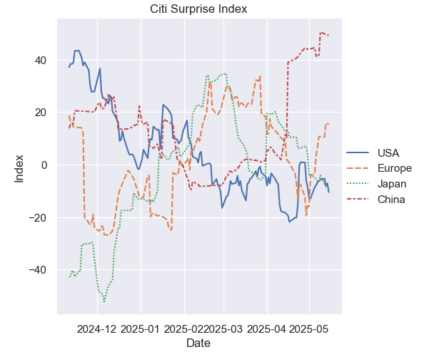 花旗经济意外指数:美国边际转弱,中国维持强势