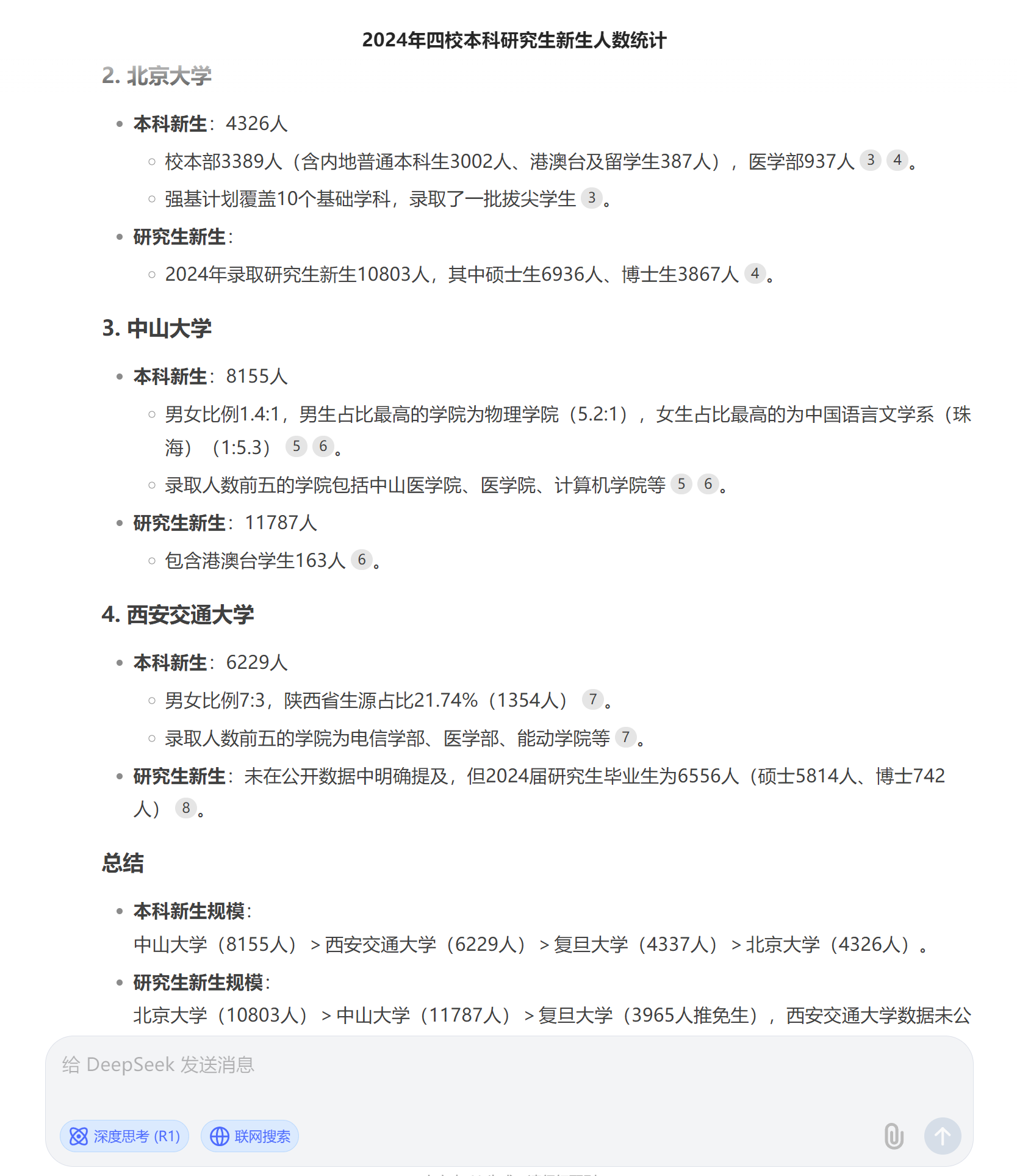 北京大学2024级本科新生人数4326名,研究生新生人数10803名。西安交通大学本科新生6100多名,研究生新生人数11129名。