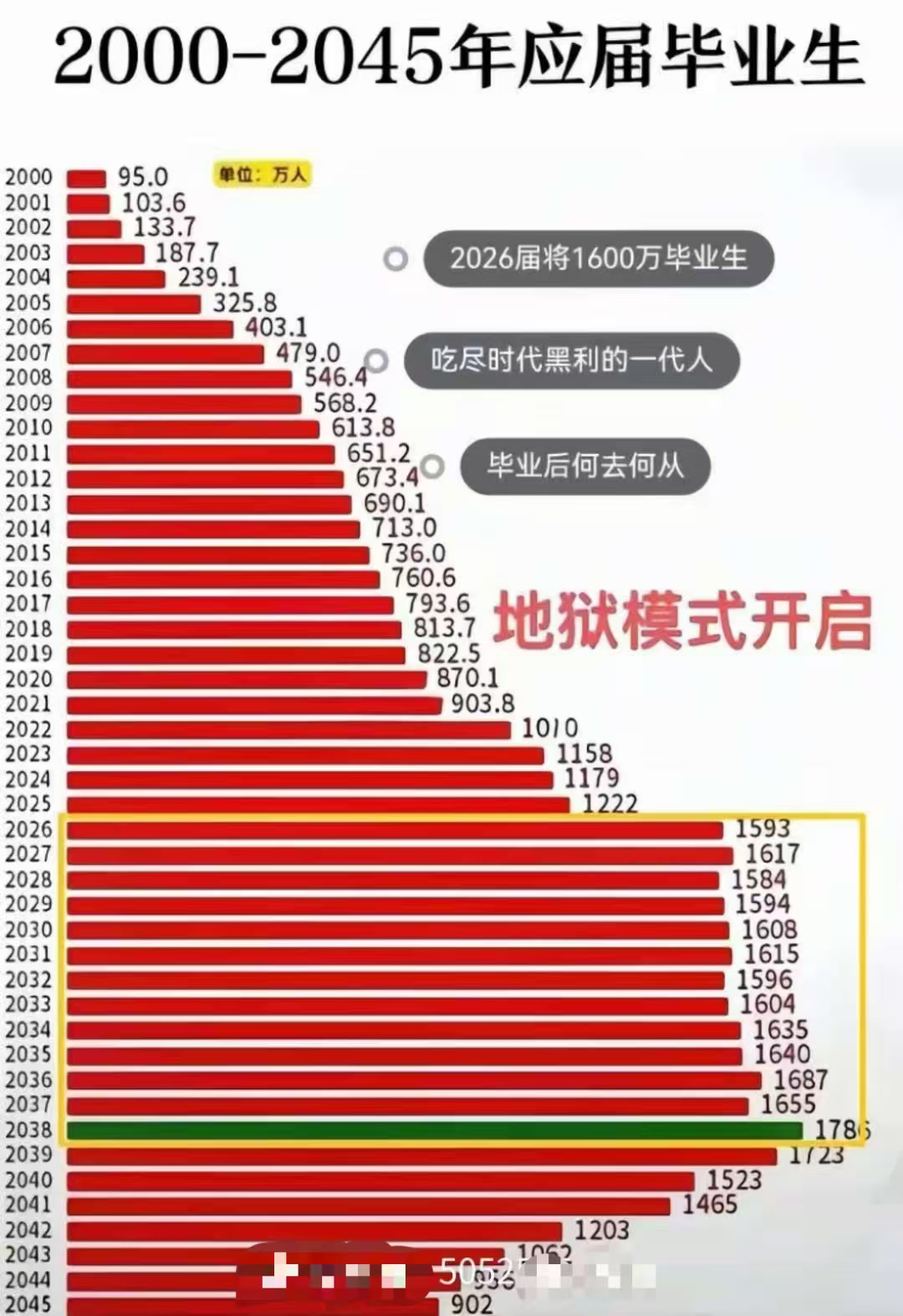 你这个是把出生人口都假设成大学毕业,实际能有60%就不错了,不如说是潜在的劳动力供应数量,另外出生人口中总有部分残疾人,部分未成年就夭折了,部分啃老不工作的人,还有一些移民出国的,加起来每年最少几十万上百万
