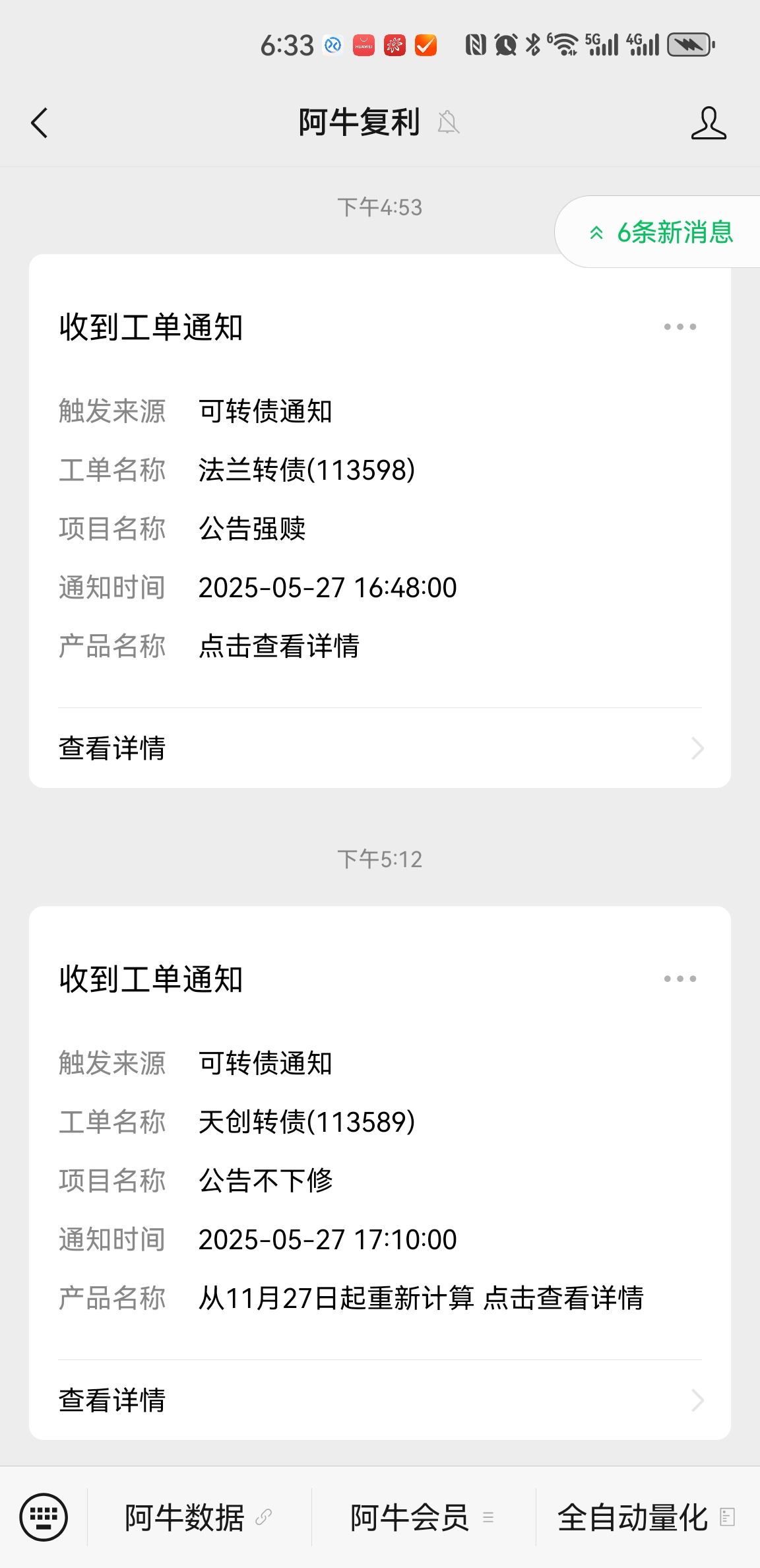 昨日平开平走,N字型,小幅波动,今日计划 有T做T 逢低回补 。 荣23 公司实际控制人因个人原因被公安机关采取强制措施 预正股转债均下跌 正裕 杭银 强赎 银轮 不强赎 太能 回购注销1亿-2亿公司股份 金诚 矿震暂停卡莫阿-卡库拉铜矿地下采矿作业 隆22 公司创始人辞去公司董事、总经理职务 蒙娜 宏微 天23 嘉元 精工 申昊 光力 不下修 北交所新股 交大铁发申购 恒帅转债 5月29日申购 南银 转股1.23亿 宏昌 转股8千万 华翔 转股1.57千万 天源 豪美 中宠2 转股0.5千万 杭银 转股2.84亿 今日 法兰 最快差一天满足可能强赎, 今日 天创 声迅 最快差一天满足可能触发下修。