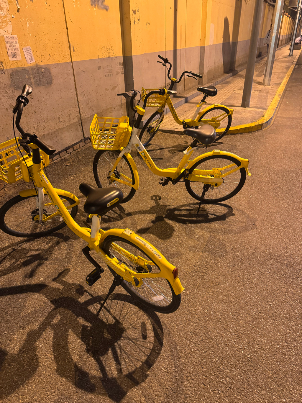 我们小城市没有这种自行车,全都是电动自行车,青桔和哈啰。以前存在过永安行的共享自行车,免费的,应该是政府买单的,现在退出市场了。这种共享单车感觉都挺脏的,上面很多都有鸟屎和灰尘。