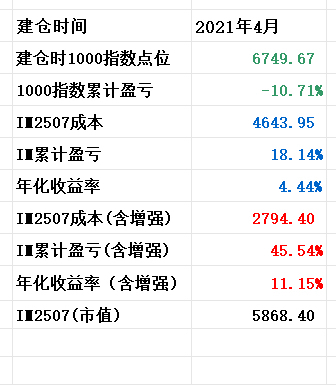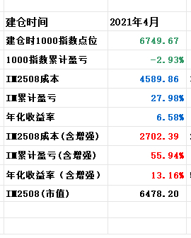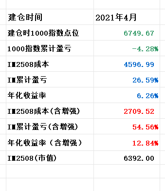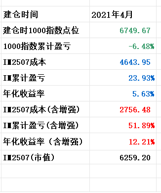 2021年4月至今吃贴水,截至目前,跑赢中证1000指数28.85%;吃贴水+保证金增强,跑赢中证1000指数56.25%。