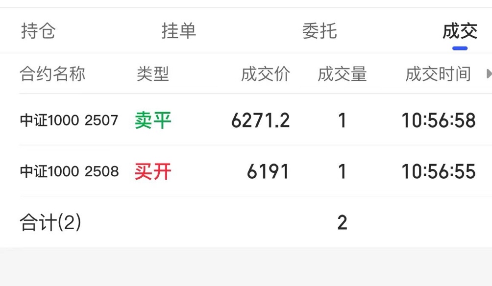 今天移仓到 im2508,看着有 74 点的基差,最后实际才拿到了70点,还搞得挺紧张 手忙脚乱。真佩服楼主能果断判断 80 点的移仓!另外请问移仓有没有什么窍门?在上升的时候还是下跌的时候移仓好?或者其他方法?谢谢。