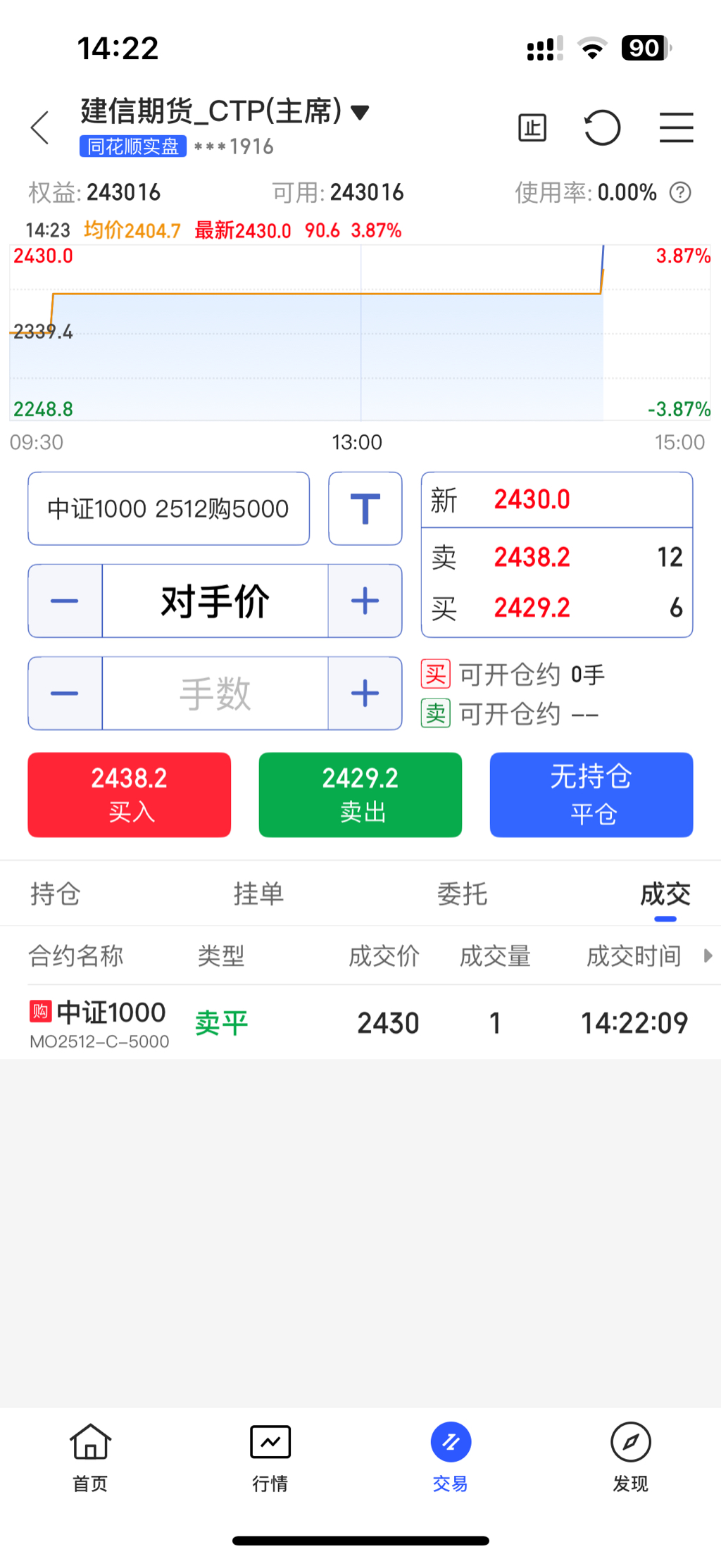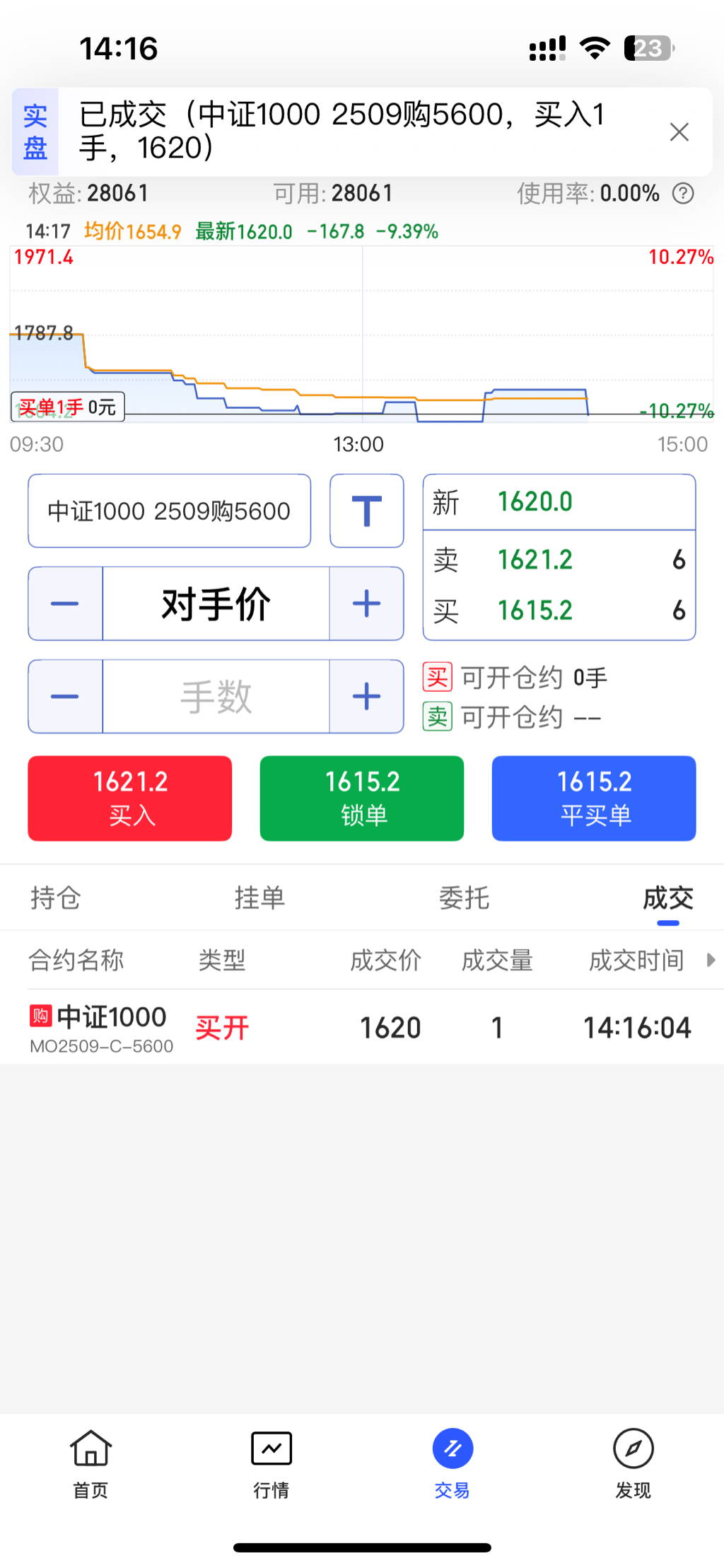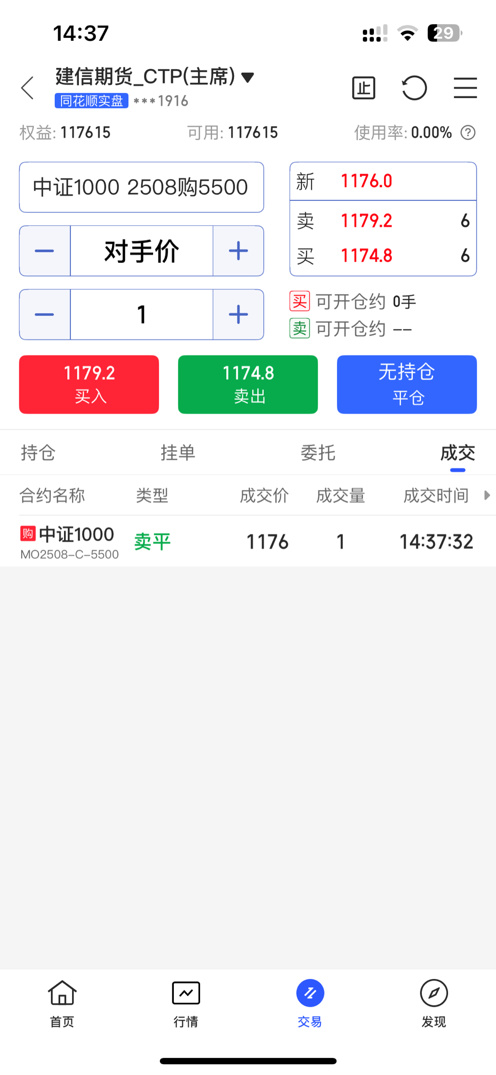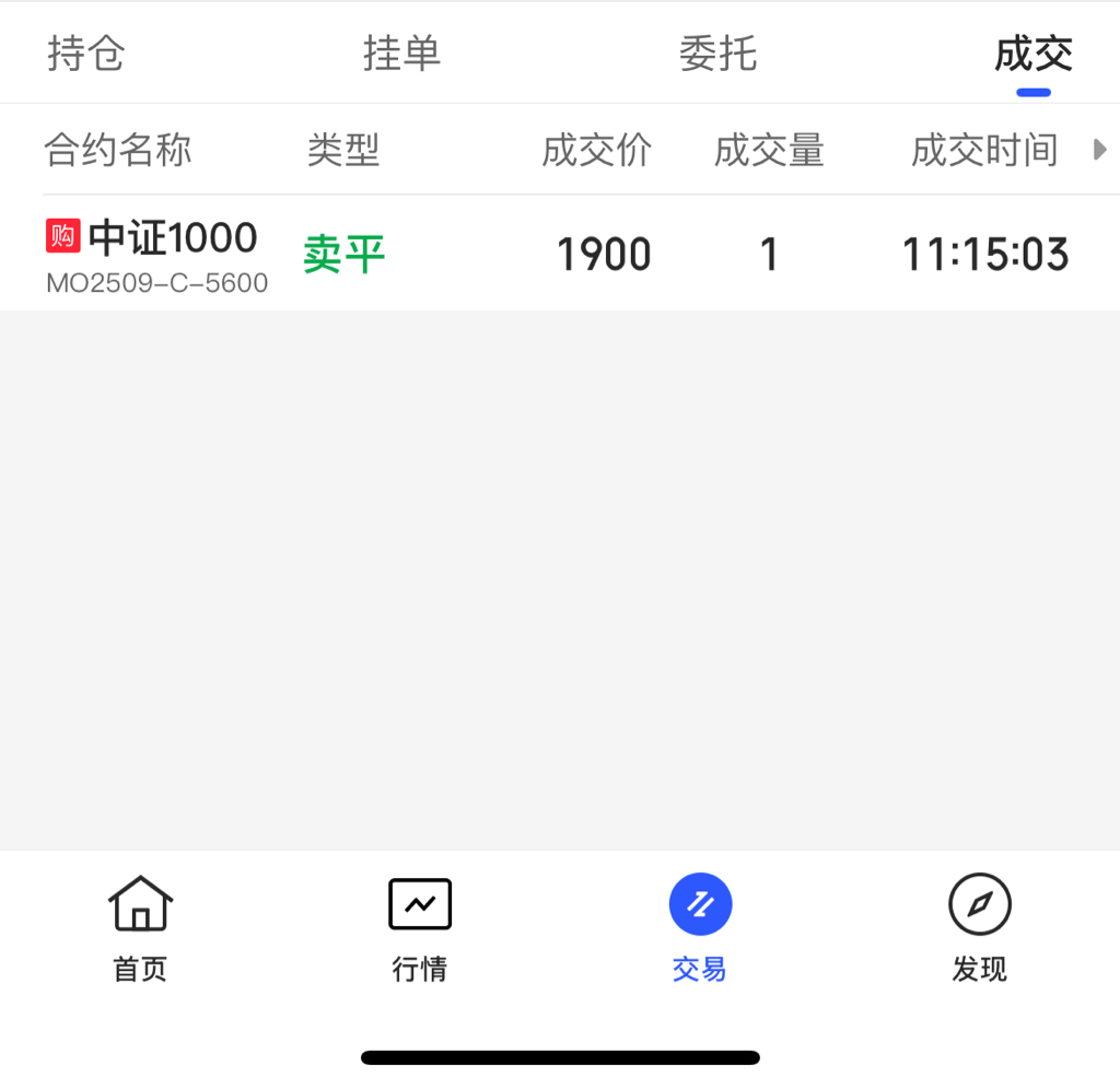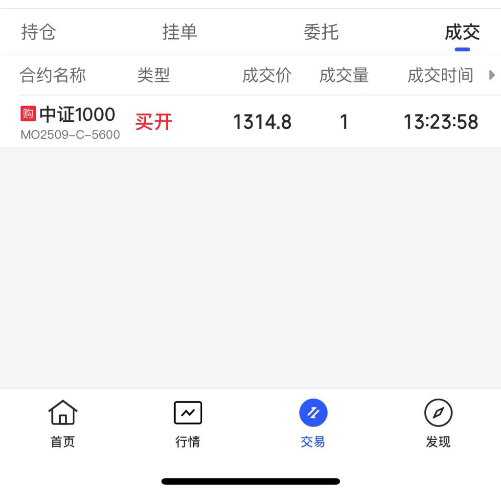 本周一移仓到了09合约每手吃到70点贴水,周二见指数突破6700点,触发网格减仓计划,减仓了1张MO2508-C-5500,盈利380.8点,其中时间价值吃了75点。