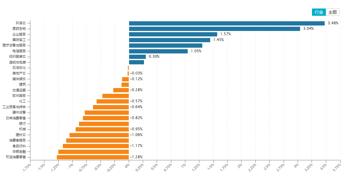行业分化,环保领涨