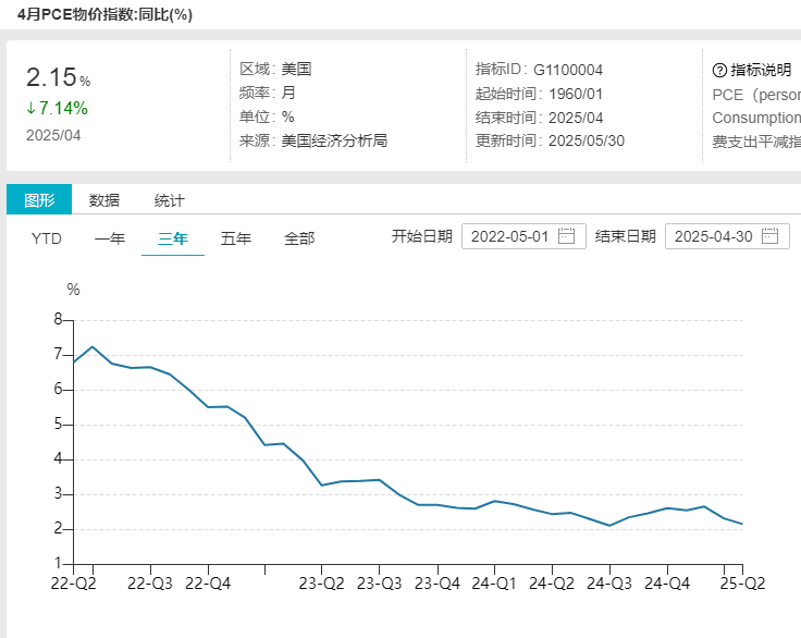 美国4月PCE物价指数低于预期和前值