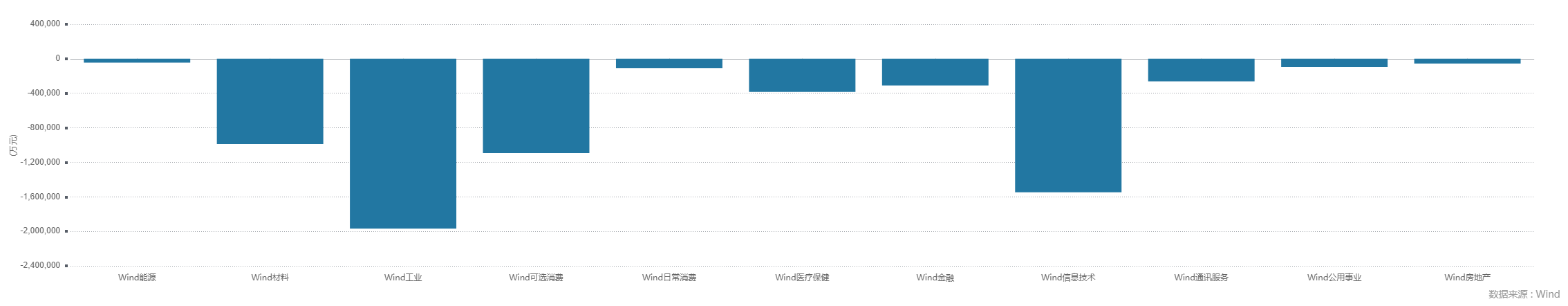 工业行业资金净流出197亿,超过信息技术行业