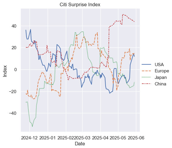 花旗经济意外指数:全球边际转强,中国维持强势