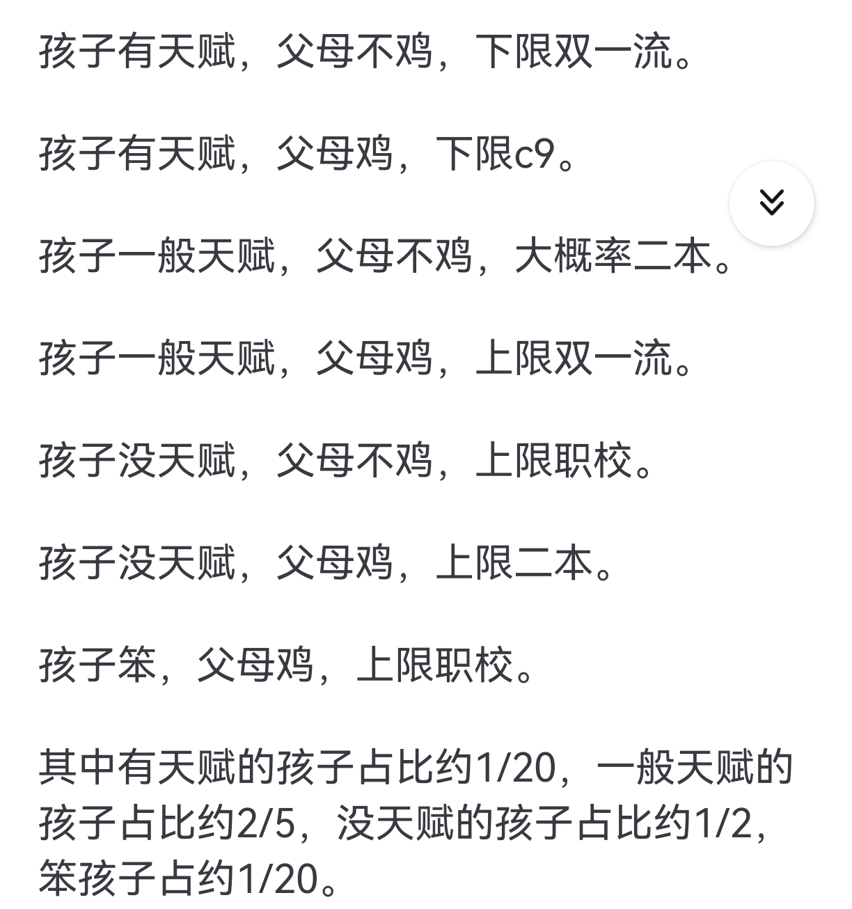 没有这么准确,但是有一定的数据来支撑,简单的说吧,我自己是本地最好的重高毕业,我儿子现在也在这所重高读书,成绩还不错。这所重高在本地的录取率低于5%,但据我了解我有联系的以前高中同学的子女,进入这所重高读书的比例,目测在在80%左右。这,不应该啊,我也是本地最好的重高,同学的子女一个进这所重高读书的都没有。完全是反例。