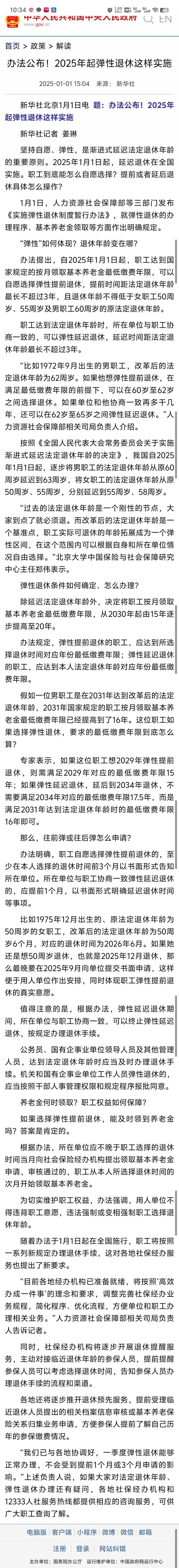 全国人大常务委员会告诉我的,这个单位说话算数吗?本决定自2025年1月1日起施行。《国务院关于渐进式延迟法定退休年龄的办法》第三条 职工达到最低缴费年限,可以自愿选择弹性提前退休,提前时间最长不超过三年,且退休年龄不得低于女职工五十周岁、五十五周岁及男职工六十周岁的原法定退休年龄。职工达到法定退休年龄,所在单位与职工协商一致的,可以弹性延迟退休,延迟时间最长不超过三年。国家另有规定的,从其规定。...