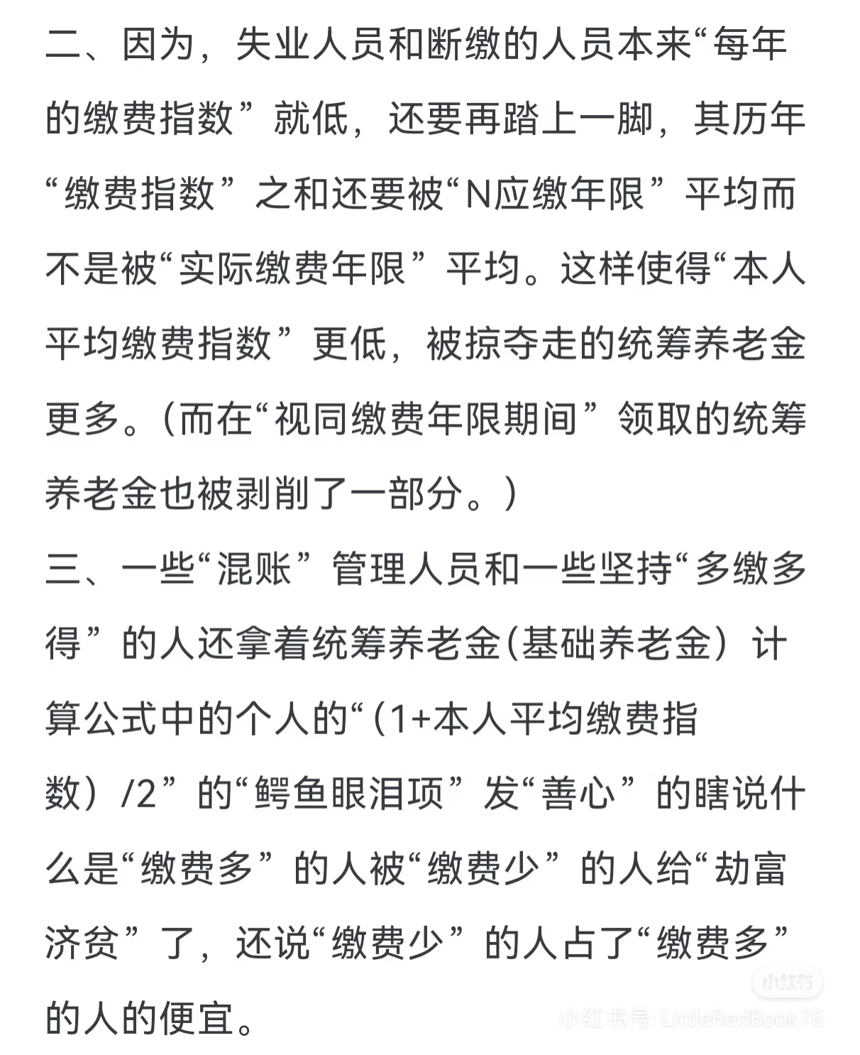 但是,从以往对于退休金的讨论来看,有很多人对于上班收入的差距能接受,却很难接受退休金的差距,他们不认为退休金是上班收入的延续,他们更倾向于退休金是国家福利。所以,从这个角度来看,还是交得越少越好,多余的钱自己存着,以免将来退休金太高(交得多本来就是被平均吃亏的)而被这些人仇视。