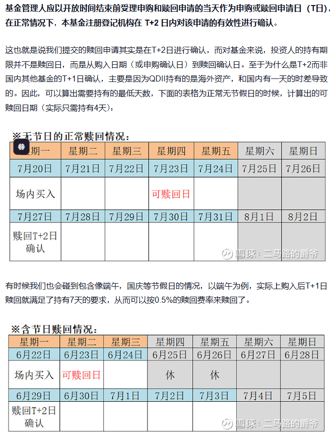 周一买入,周五赎回的话为7天,这是对的。买入当天就计为第一天。丑哥,我有点混乱了,有个专门做套利的公众号也是显示周四可赎,我感觉也有道理,毕竟t➕2,周四赎回,周五也算持有,周一收盘后可能才到账。