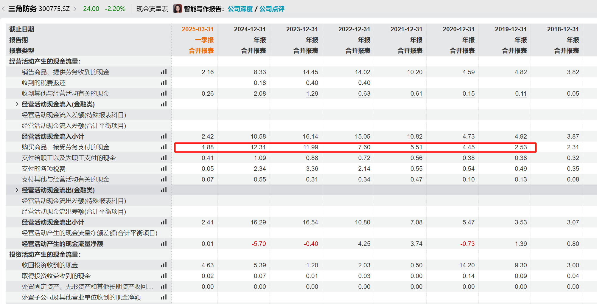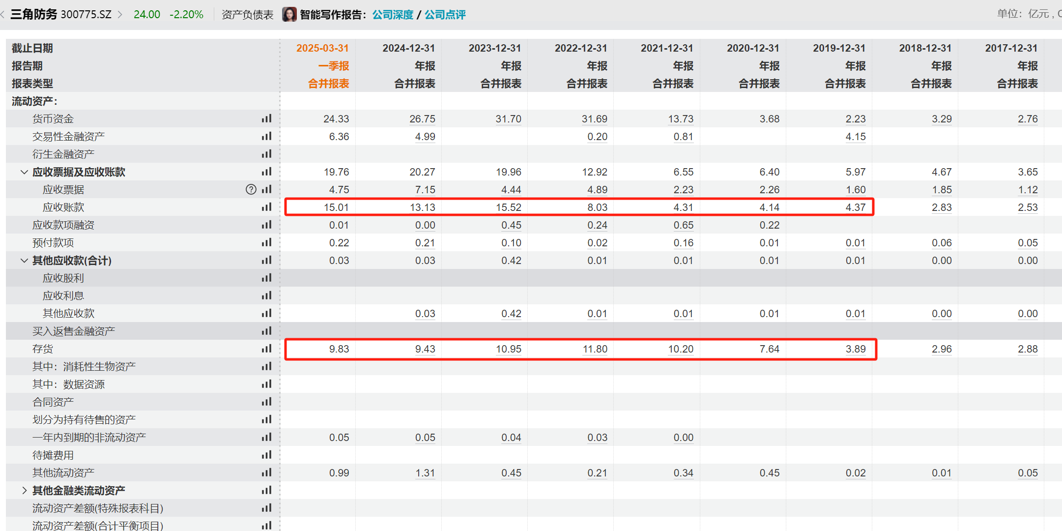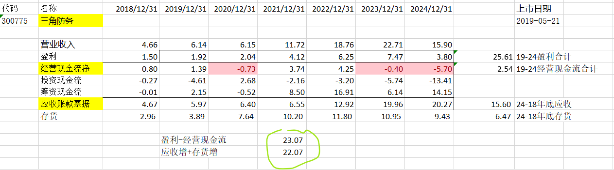 三角防务24年比19年存货多了5.6亿,其他流动资产多了1.3亿(应该大部分是待抵扣进项说和预缴税)