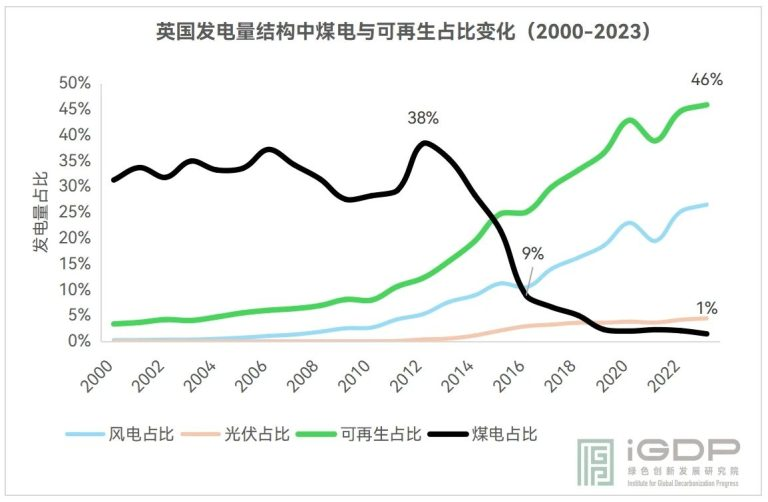 英国建了世界上第一台燃煤机组,其在2012年燃煤发电还是第一大来源,占比高达38%,但在2024年,占比已经不到1%,并且在2024年底拆除了最后一台燃煤机组。这期间,风电快速上升为第一大电力来源,储能发挥了巨大的作用。但因为风力发电的不稳定,频繁需要天然气机组填峰,而出清电价又是由最高电价决定的,这造成了英国电价特别高。