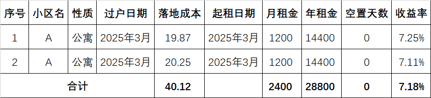 反正我目前自住一套,又刚入手一套,原先有二套出租,所有房子都是0成本。。。对于0成本的房子,哪怕租金再低,收入再少也是白赚,这个道理简单吧