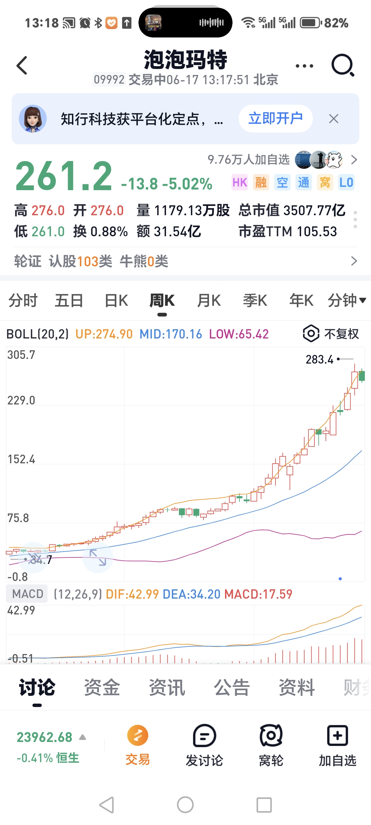 当前静态市盈率约103-109倍,市净率超30倍,远超传统消费股水平。泡泡玛特当前估值(PE 103倍)远超香港传统消费股(PE 20-25倍),与全球IP巨头(迪士尼40倍)相比仍存在溢价。