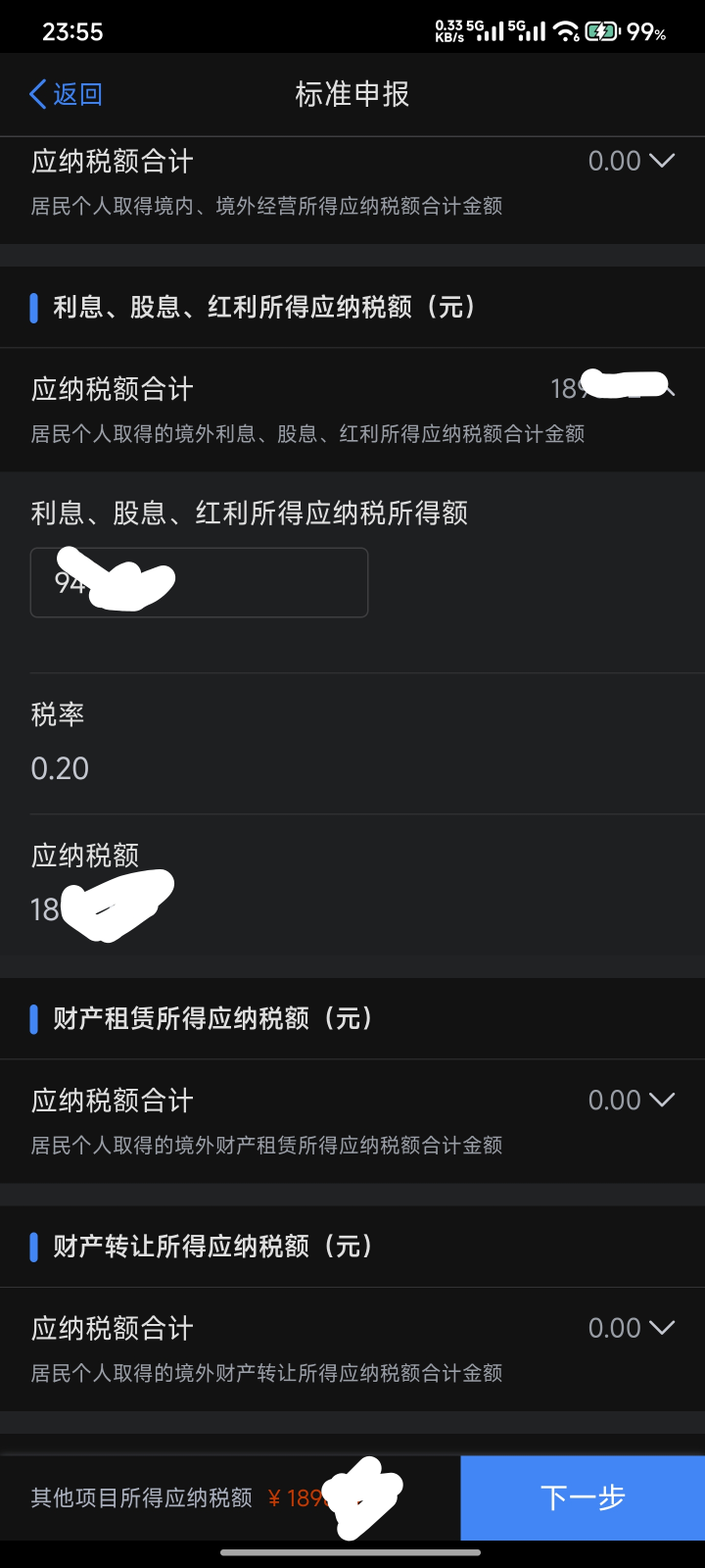 很笼统的填写界面,也没分炒股和银行利息。其实购买的 A 股亏了不少,和一块应该不需要交。但是谁知道现在什么交法,是按照年度算,还是按照单笔盈利就算?