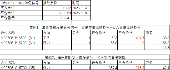 策略1:海龟策略发出做多信号,(卖出实值看跌期权+买入虚值看跌期权)。持有到交割日。