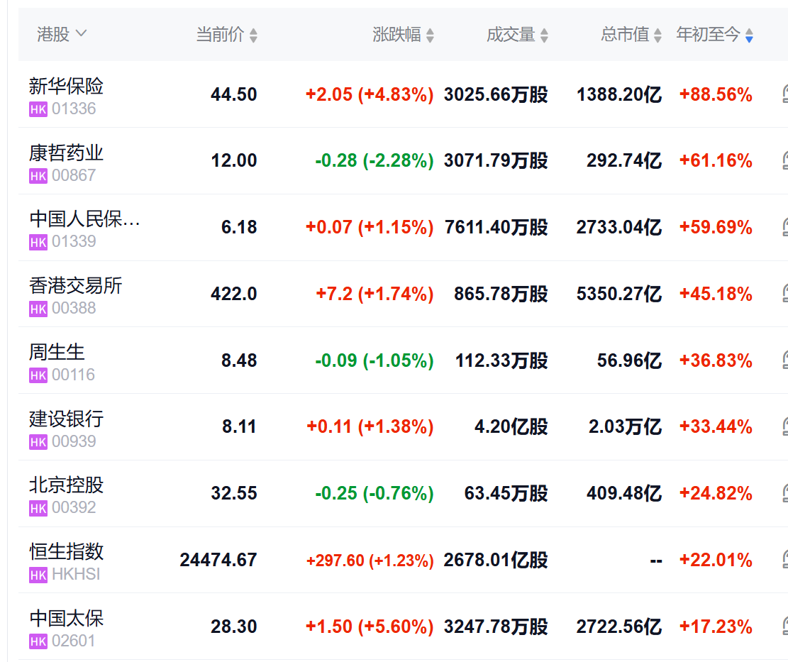 做了wind数据统计,今年以来恒生指数和恒生科技涨幅均超过18%,沪深300和上证指数基本没涨,wind小微盘股指数和北交所指数上涨超30%。涨幅居前的板块有港股创新药、A股贵金属,跌幅居前的是A股煤炭和房地产板块。另外,黄金今年涨幅也有26%。