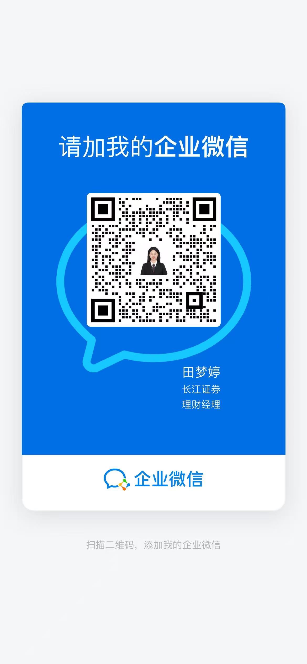 方式1:扫描下方二维码提交预约信息,下载长江e号开户,7*24小时均可操作。方式2:请添加下方理财经理企业微信或者拨打电话18197998704