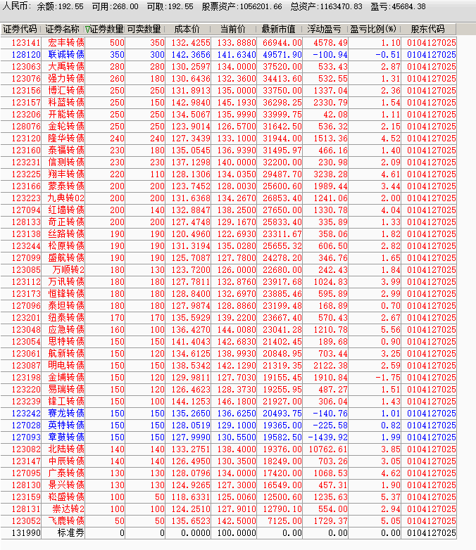 一,可转债初始投资110万,浮盈6.34万,净值1.058