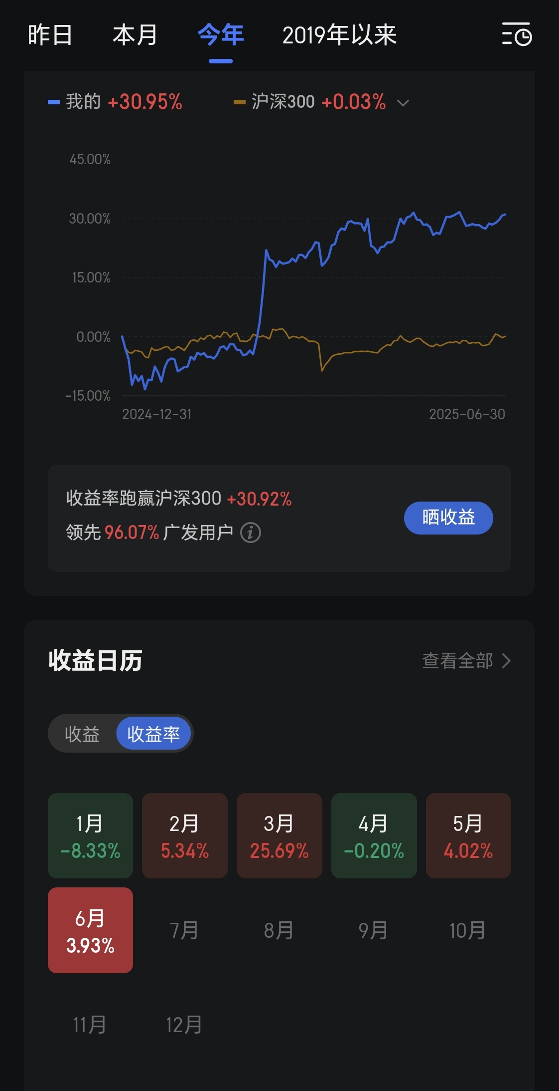上半年结束了,小市值的垃圾可转债投资,2025年H1实现30.95%收益.