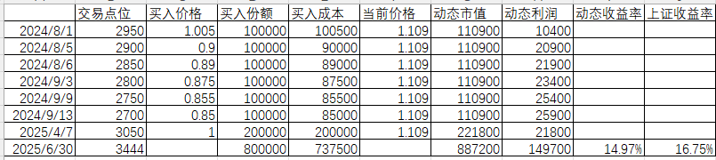 只按点位机械式买入,不作滚动式高抛低吸,结果比指数收益差