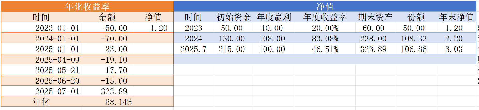 2018年毕业后算是正式开始理财,虽然前几年也基本保持每年正收益,但当时本金小,所以以2023年的50w资金作为元年计算净值和收益率。
