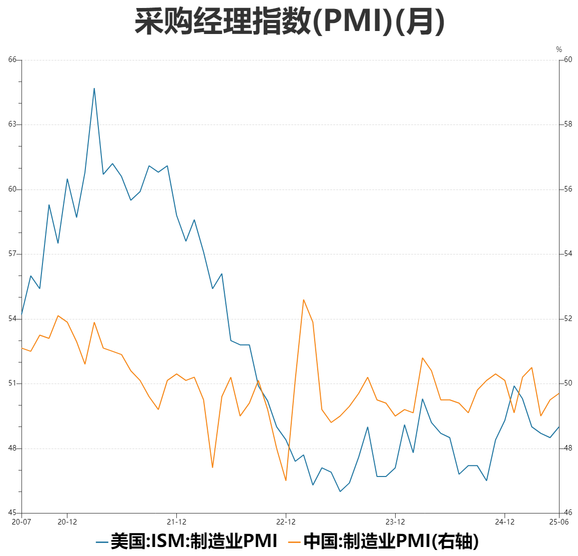 6月制造业PMI中美同时反弹,但仍在在荣枯线下方