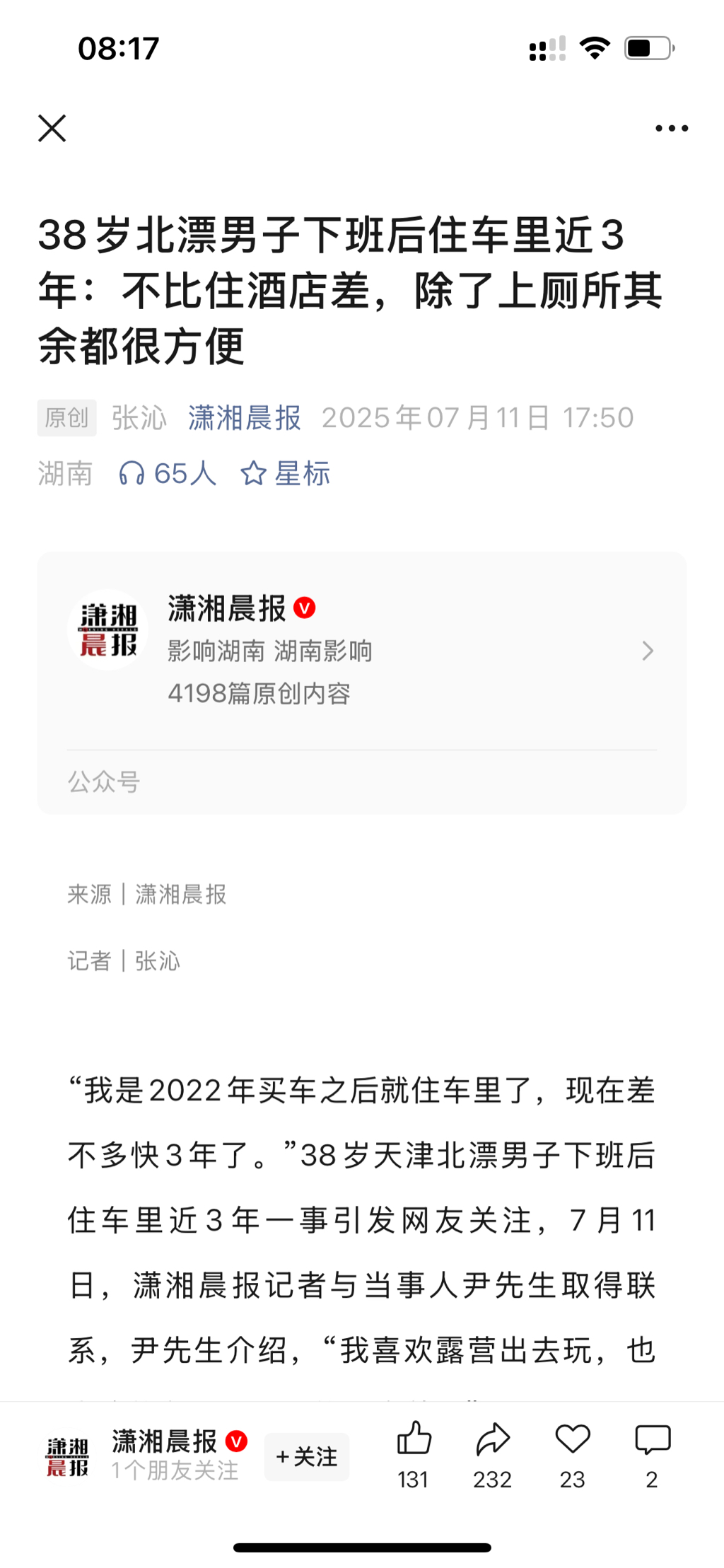 都不用房车,很多人就住在普通的电动车里把座椅放倒铺上被子就是床洗衣服洗澡在酒店开钟点房,可以免费用酒店的高档洗衣机,四个小时足够处理完脏衣服刷牙洗脸在公厕解决医院,图书馆,公园,商场母婴室,这些地方都能提供免费热水,不管是饮用还是洗漱都可以提前存一些吃饭用电饭煲,电磁炉,卡式炉解决程序员工作日住车里,周末回家https://baijiahao.baidu.com/s?id=18369157662...牛马太苦了