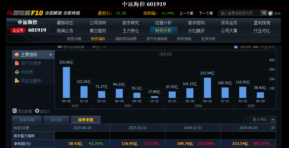 按季度看,第二季度净利润同比下降42.25%。虽然从半年度看,净利润还增加了3.95%。半年度净资产收益率7.35%,简单乘以2,估算一下年净资产收益率14.7%。个人认为挺不错的。3季度的业绩确认的应该是2季度的运价水平,全年300-350亿净利润水平差不多