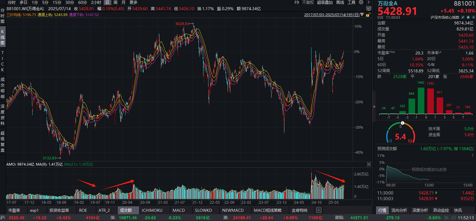 按此分析,如果这一波的成交额没有持续保持升高,没有量价齐升,则应该有一波调整了。
