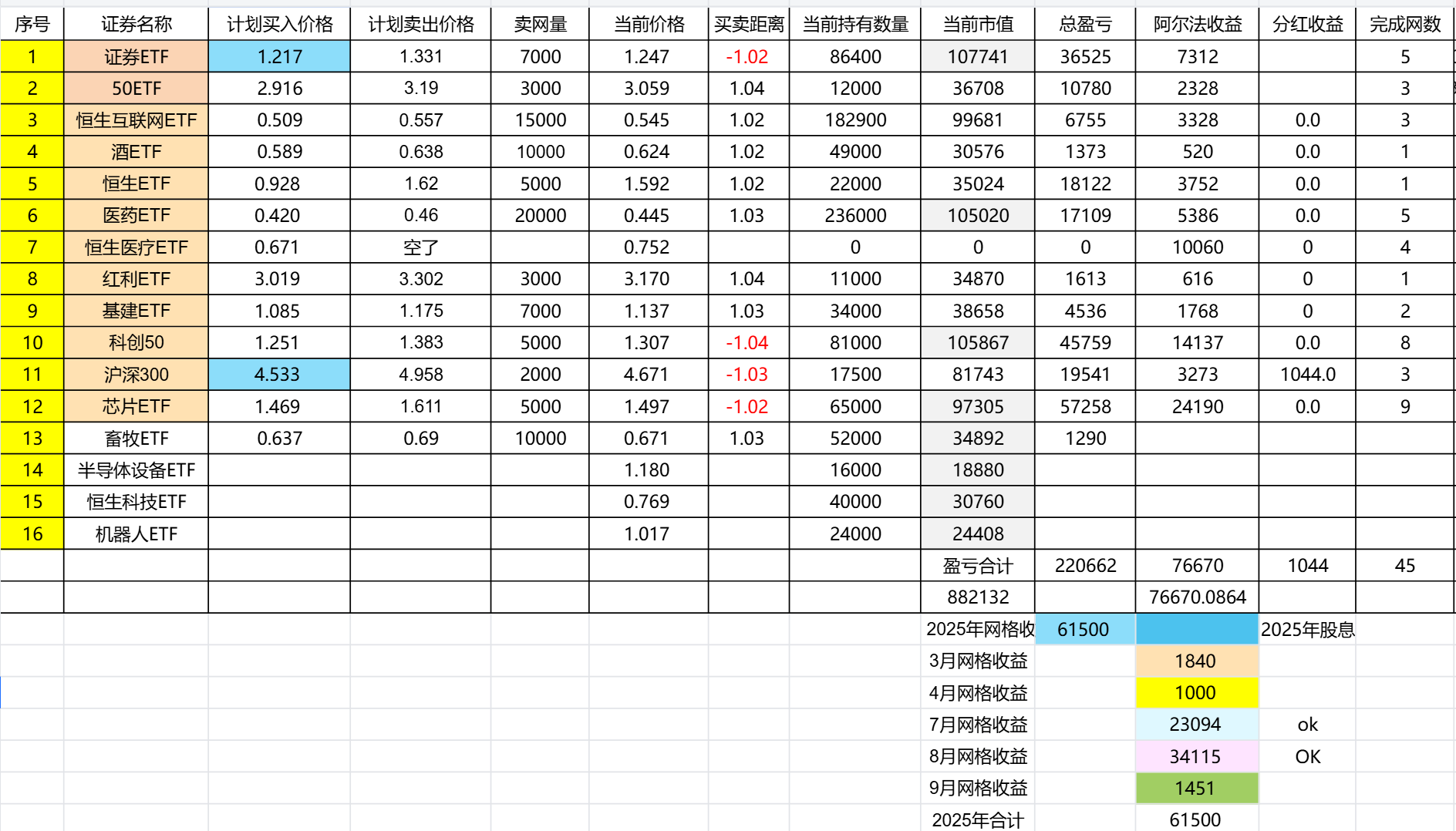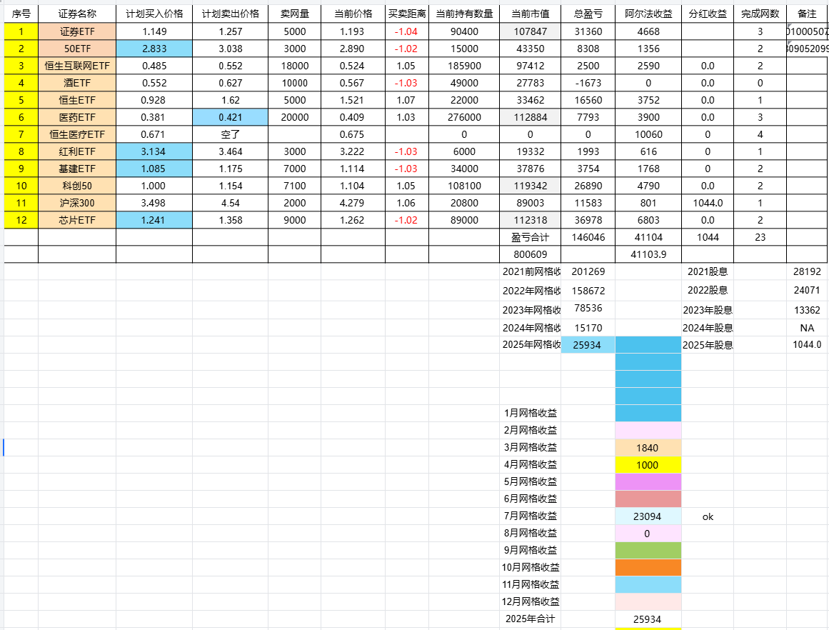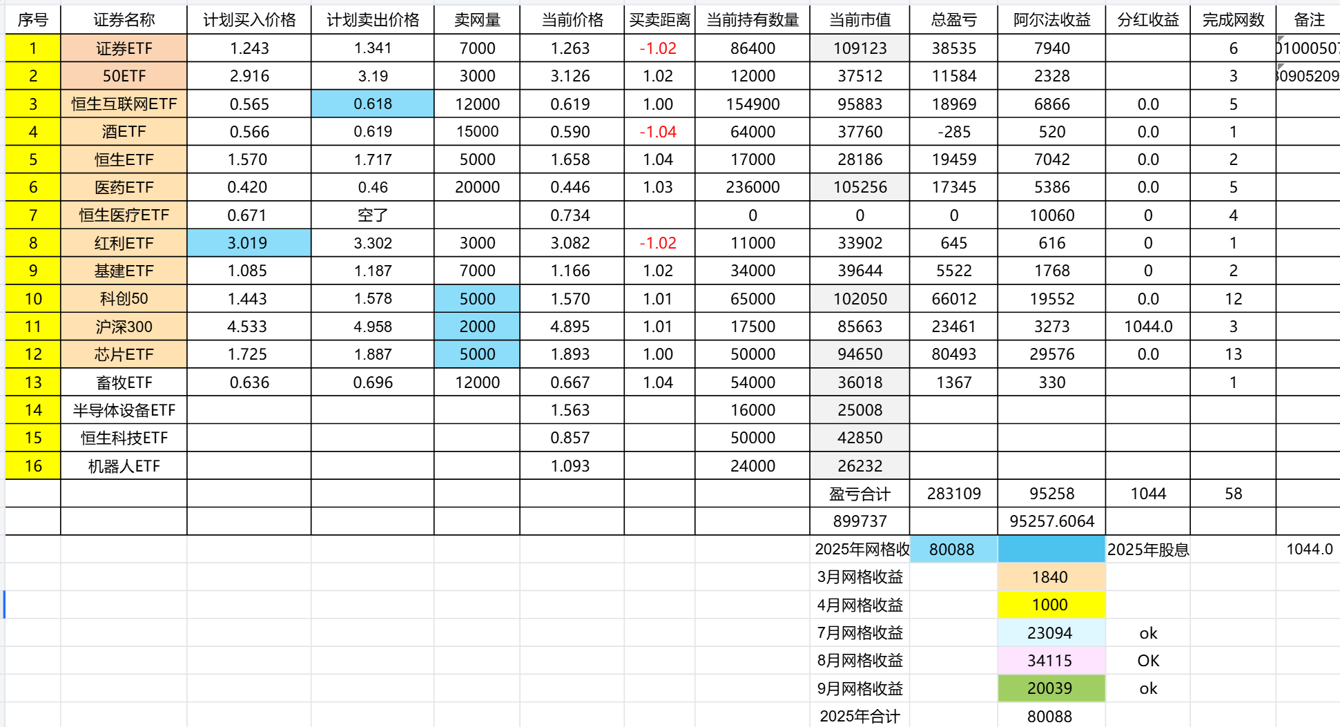 前期买入的成本比较低,重新做了一下买卖点,目标每月网格收益8000。