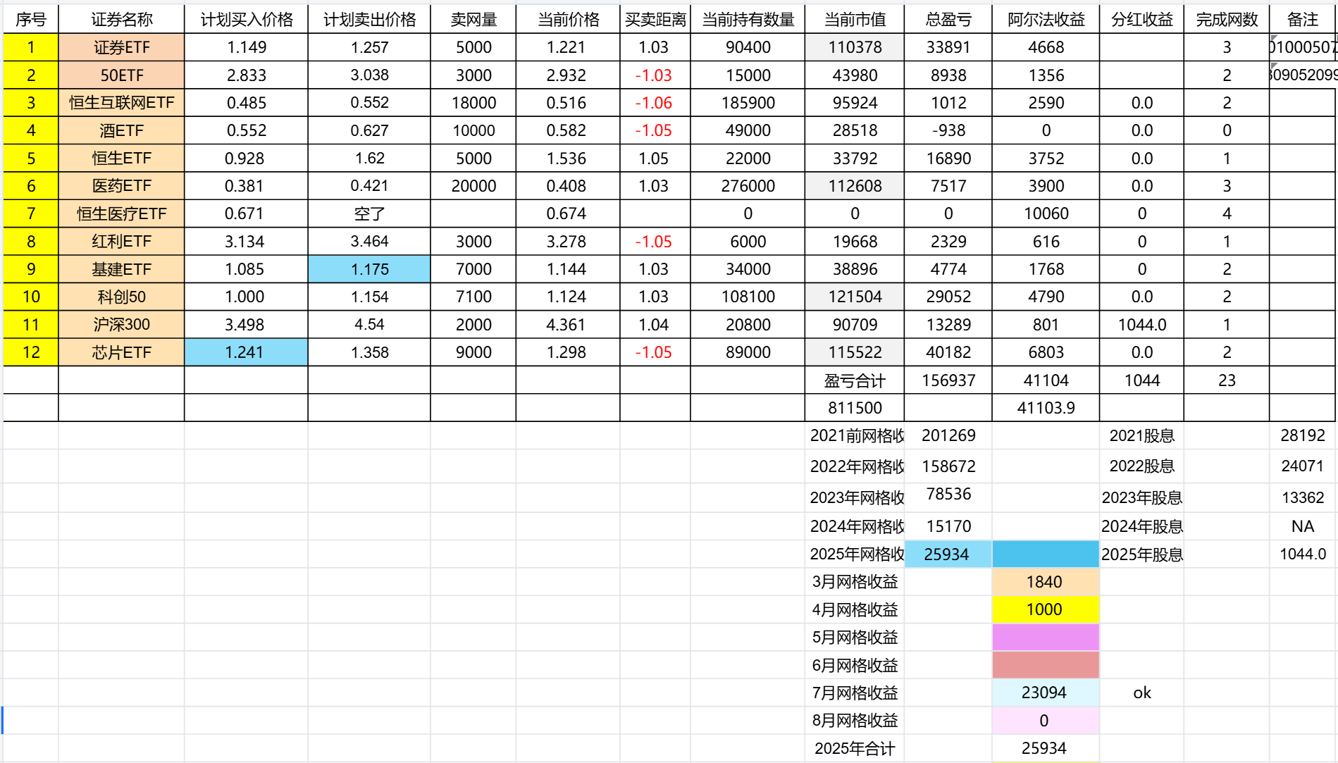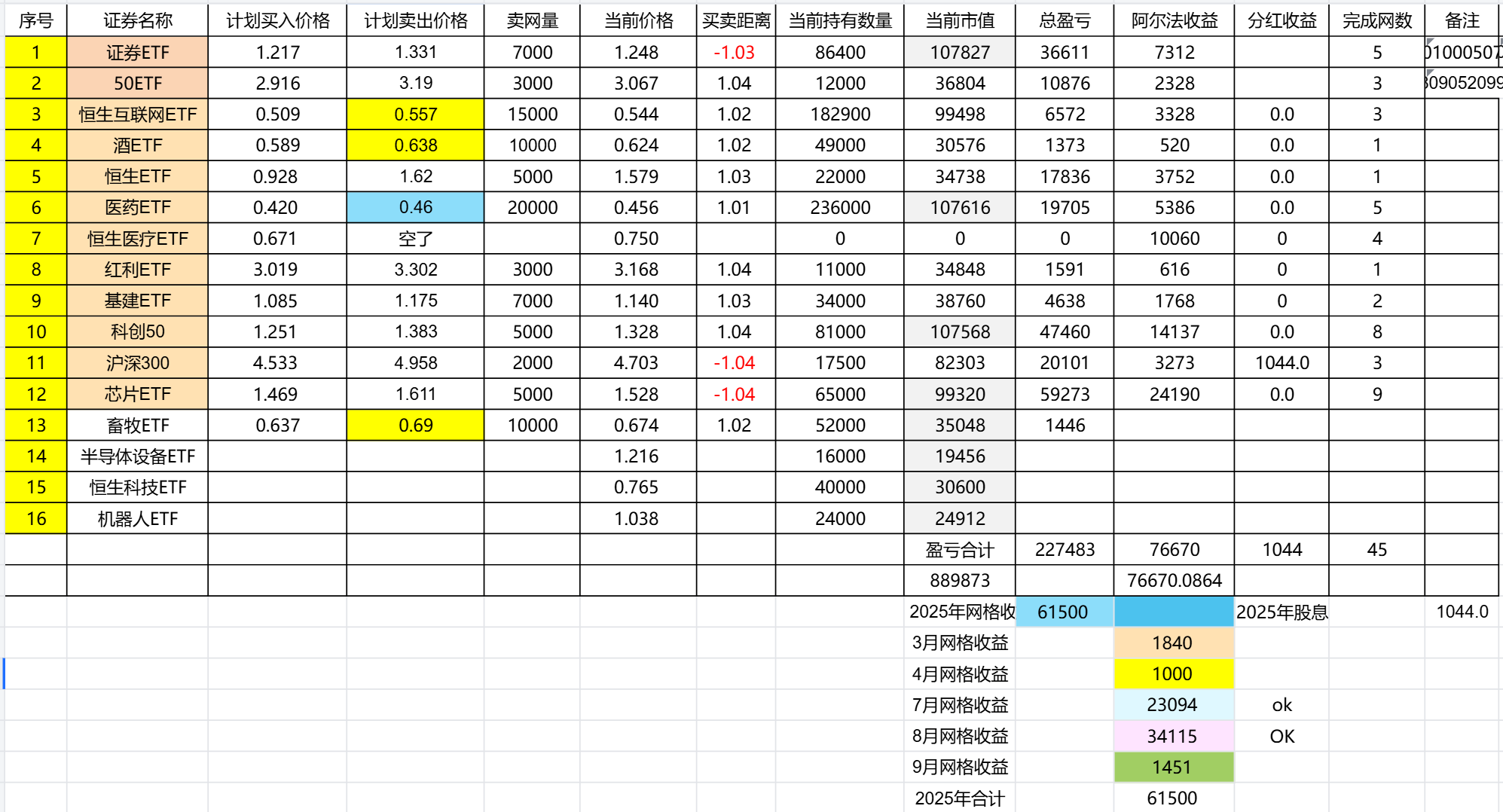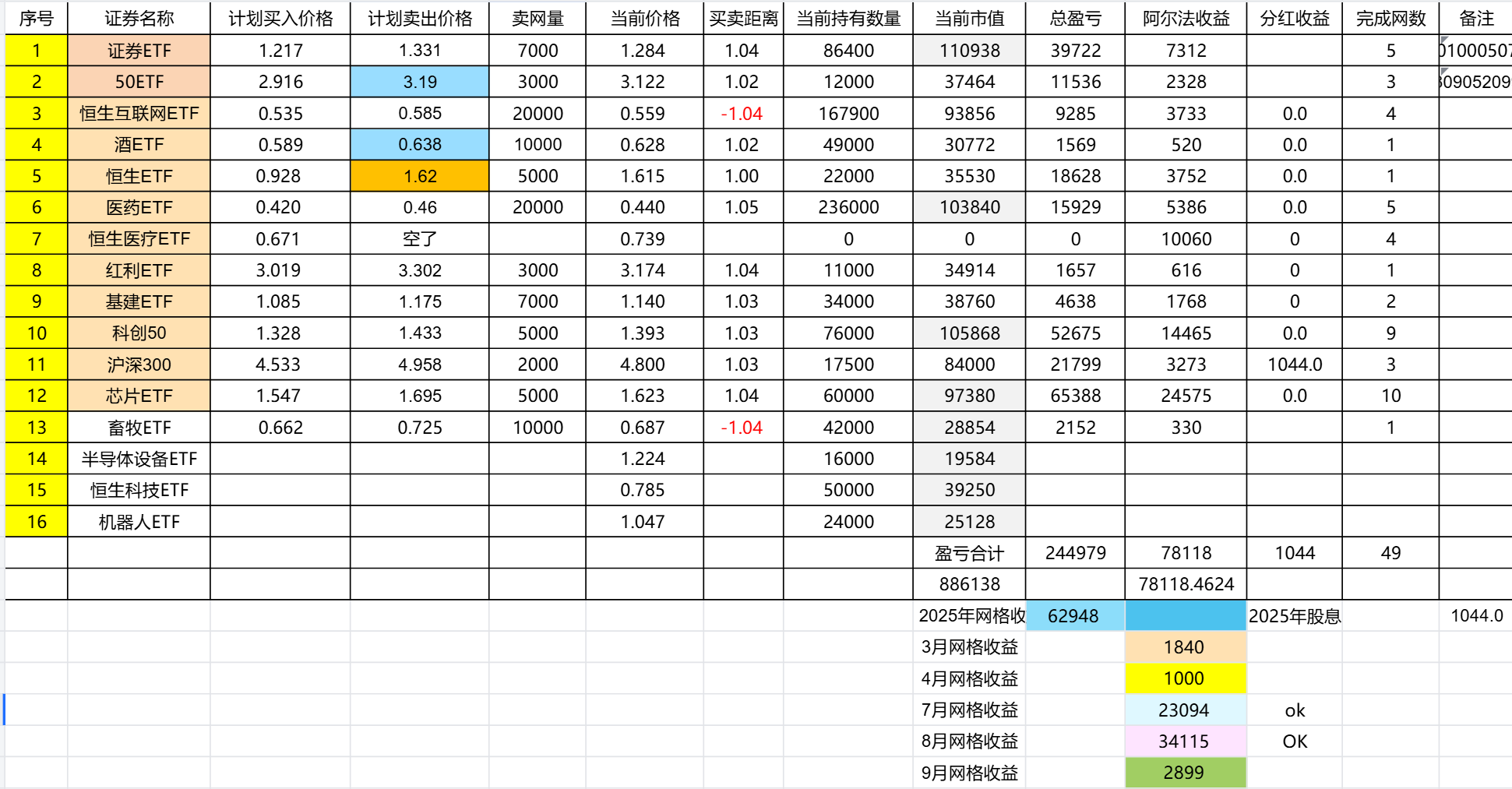 前期买入的成本比较低,重新做了一下买卖点,目标每月网格收益8000。