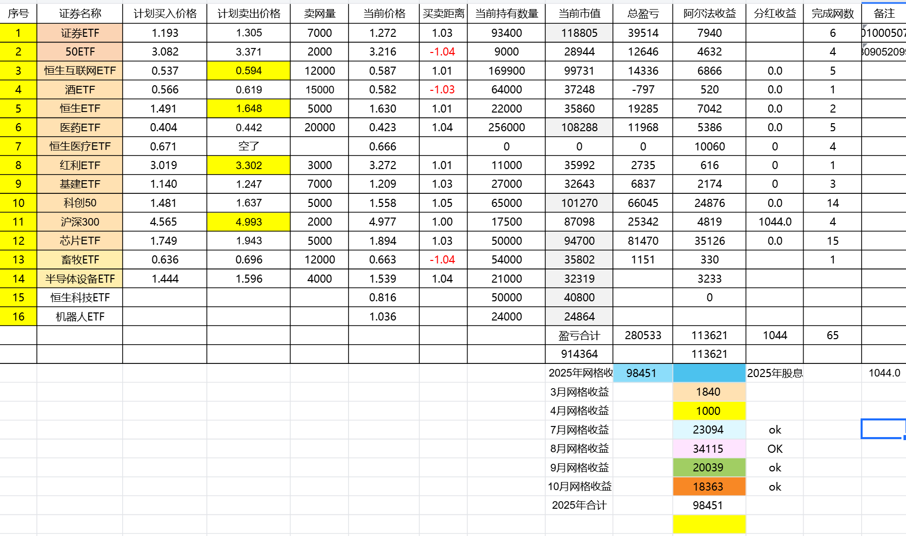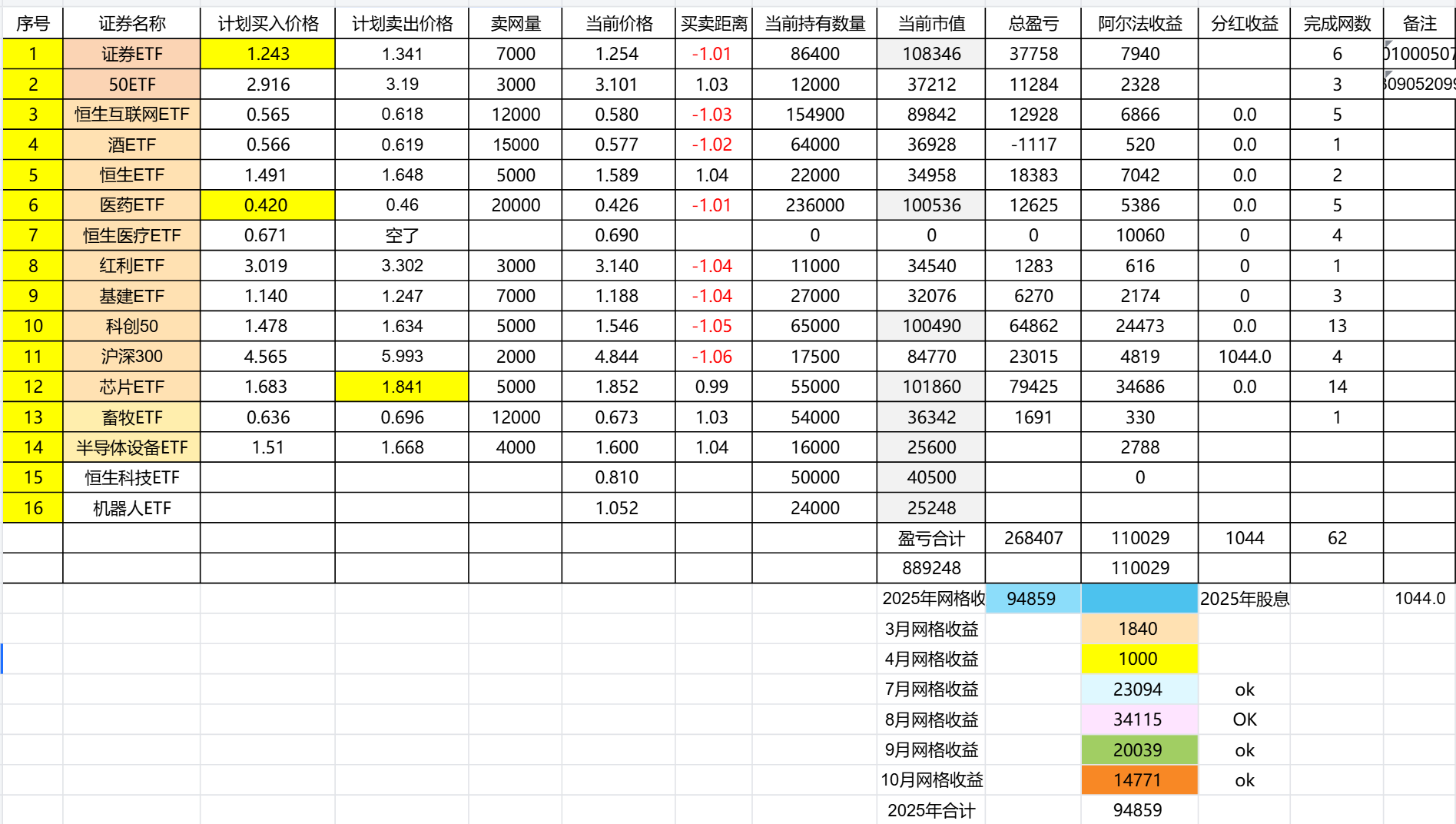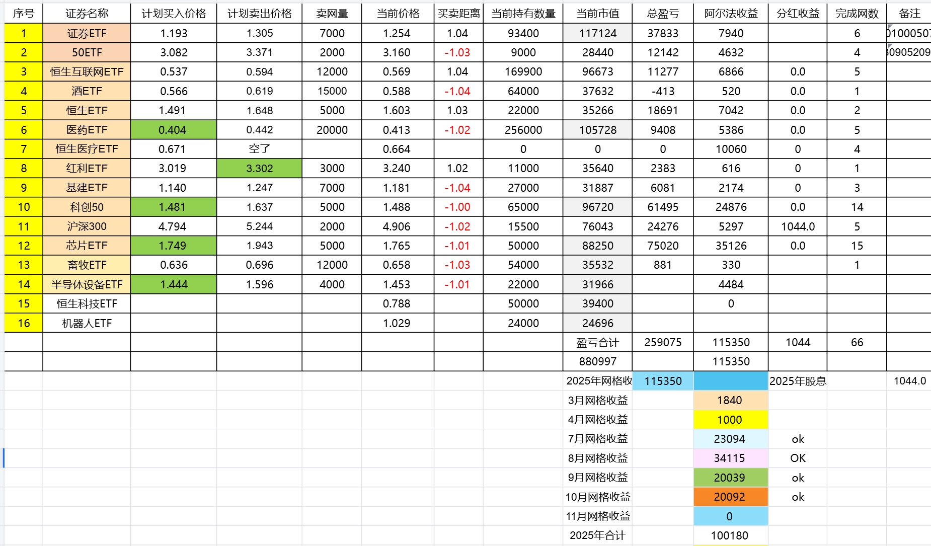 7月开始网格收益一直保持不错,但大盘、科技感觉调整时间要到了,接下来预计不会这么顺利。对了,10是总体是亏钱的,5月开始保持月度盈利的金身破了。