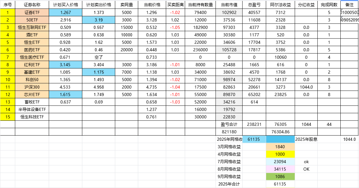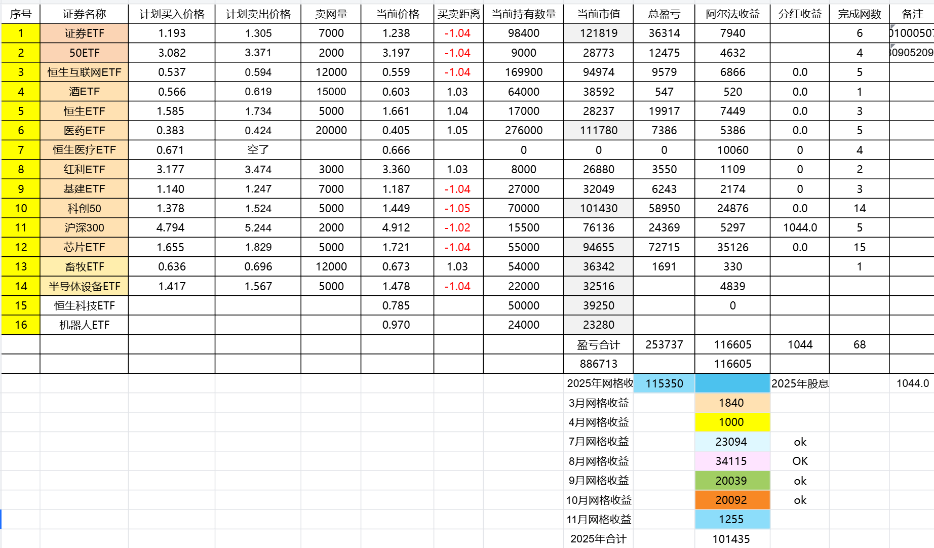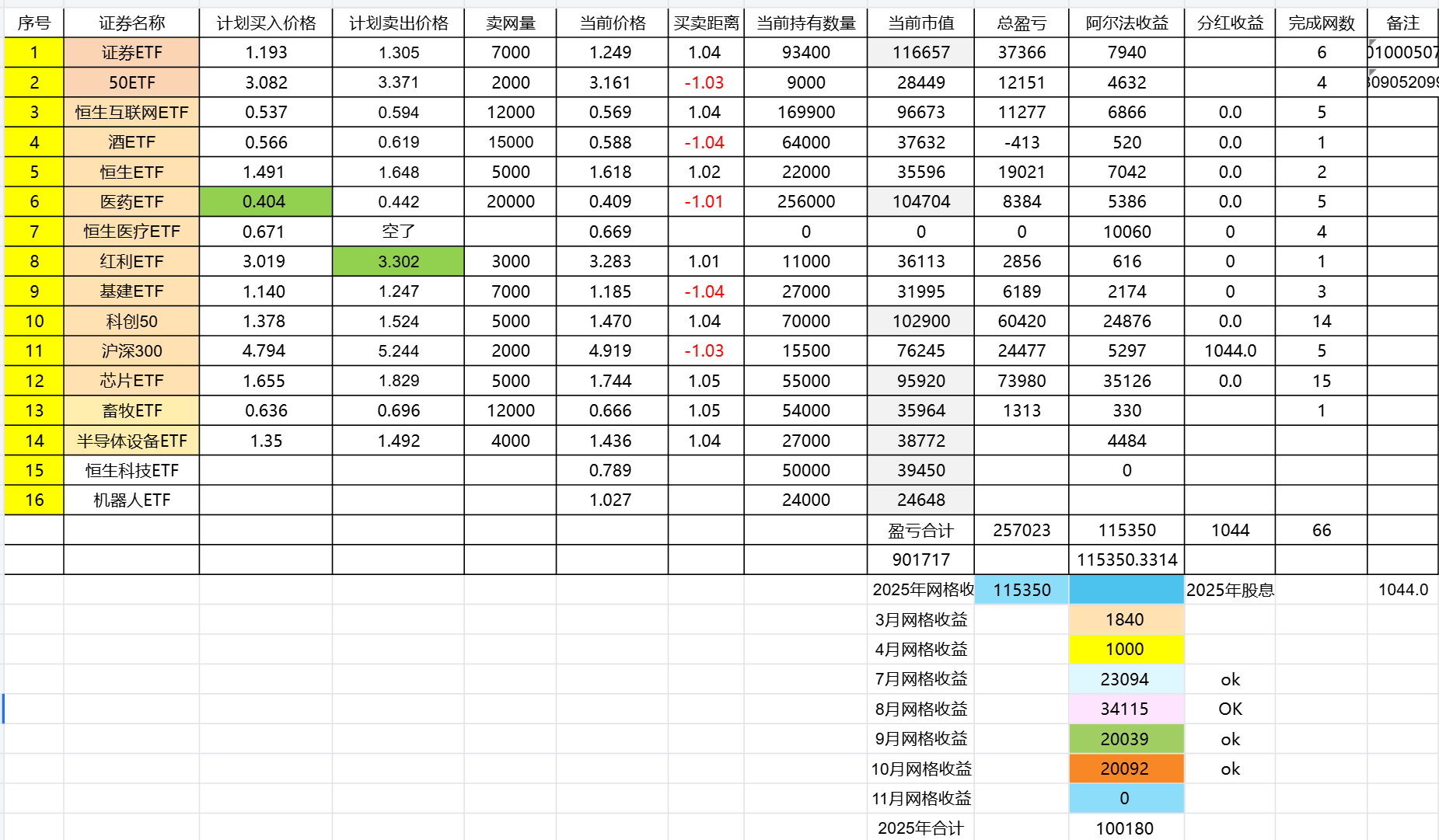 7月开始网格收益一直保持不错,但大盘、科技感觉调整时间要到了,接下来预计不会这么顺利。对了,10是总体是亏钱的,5月开始保持月度盈利的金身破了。