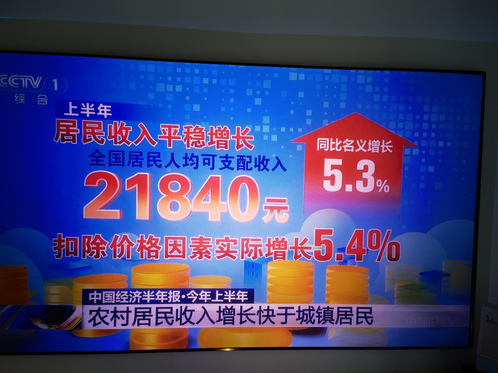 1:上半年GDP,同比增长5.3%,居民收入实际增长5.4%;