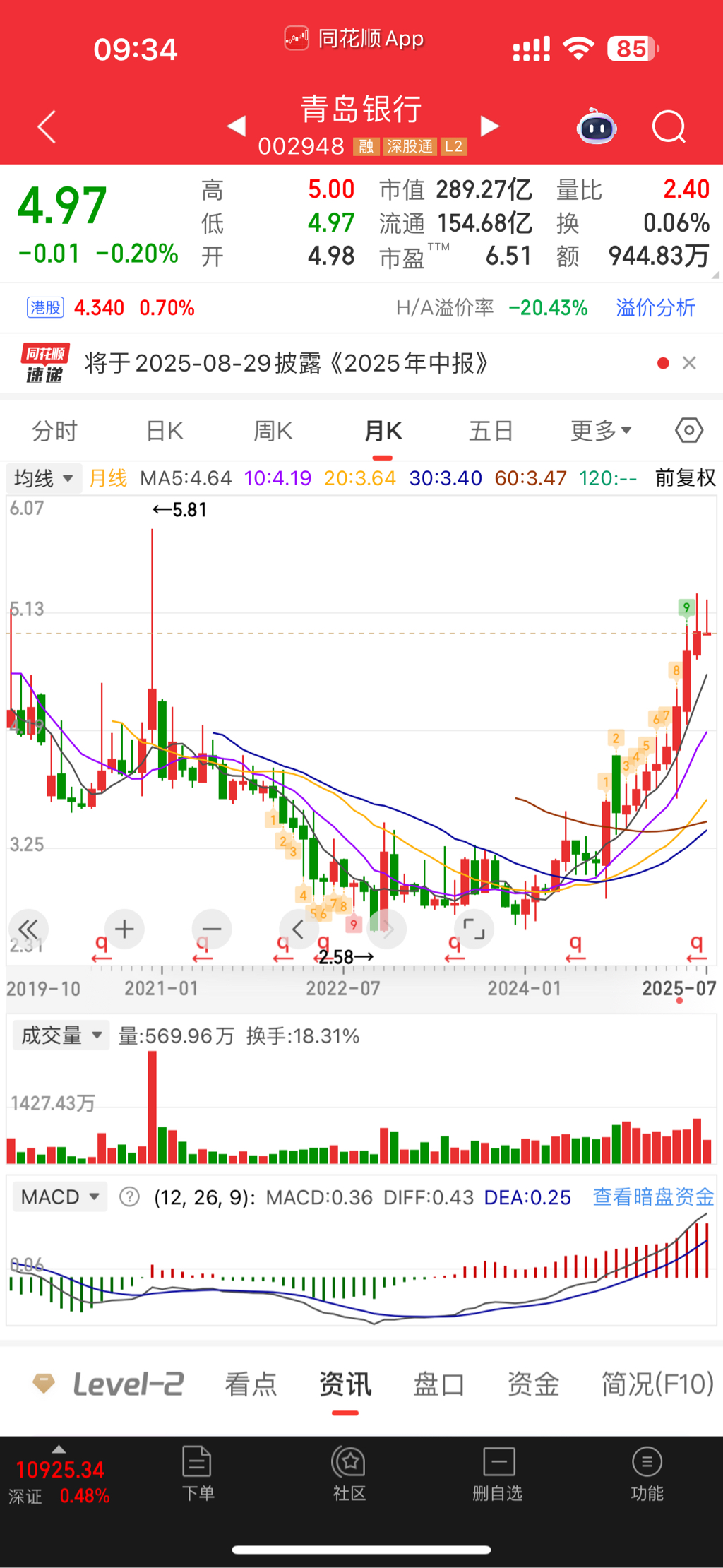 参考一下青岛银行 齐鲁银行 的月K走势!牛13地区银行都那么牛13了,地产差不离!
