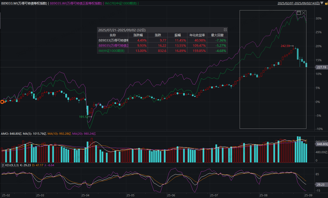 1、对于可转债摊大饼或持有可转债ETF的朋友,建议可以将持有的可转债的大部分从可转债持仓上逐步调整至IM、IC吃贴水或优秀公募基金上(是的,我推荐持有公募基金。今年以来公募基金的超额收益已经悄悄跑赢宽基不少了)