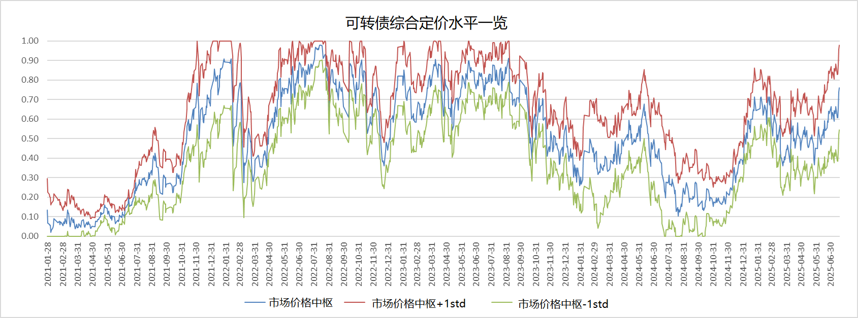而从 @鸭蛋 大师的思想中归纳出的可转债期权相对定价也再次进入中等偏高的水平,具体见图中蓝线: