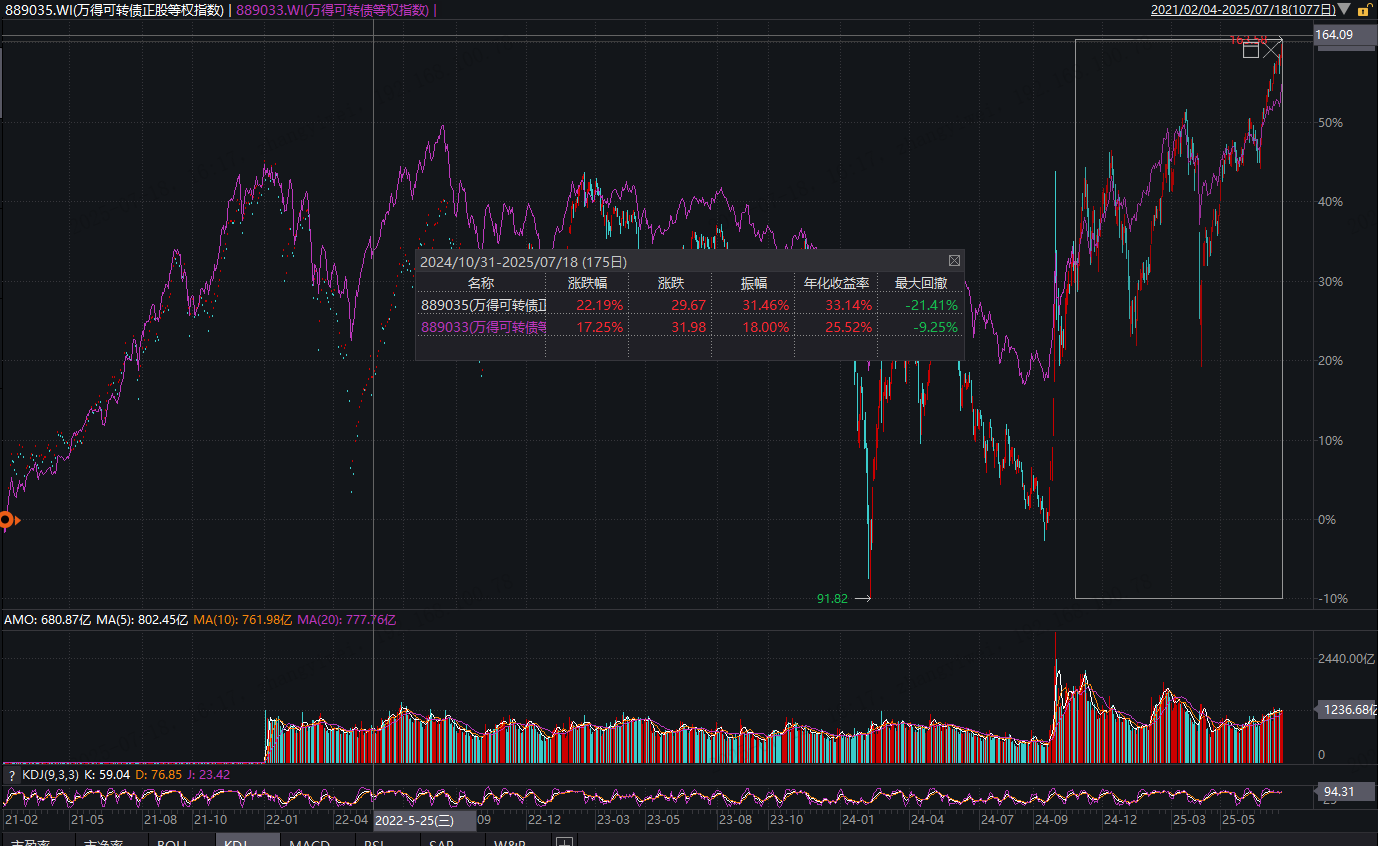 观察:在此期间,在下修、回售、分红填权等一系列增益加持下,可转债与正股的性价比几乎没有明显区别。